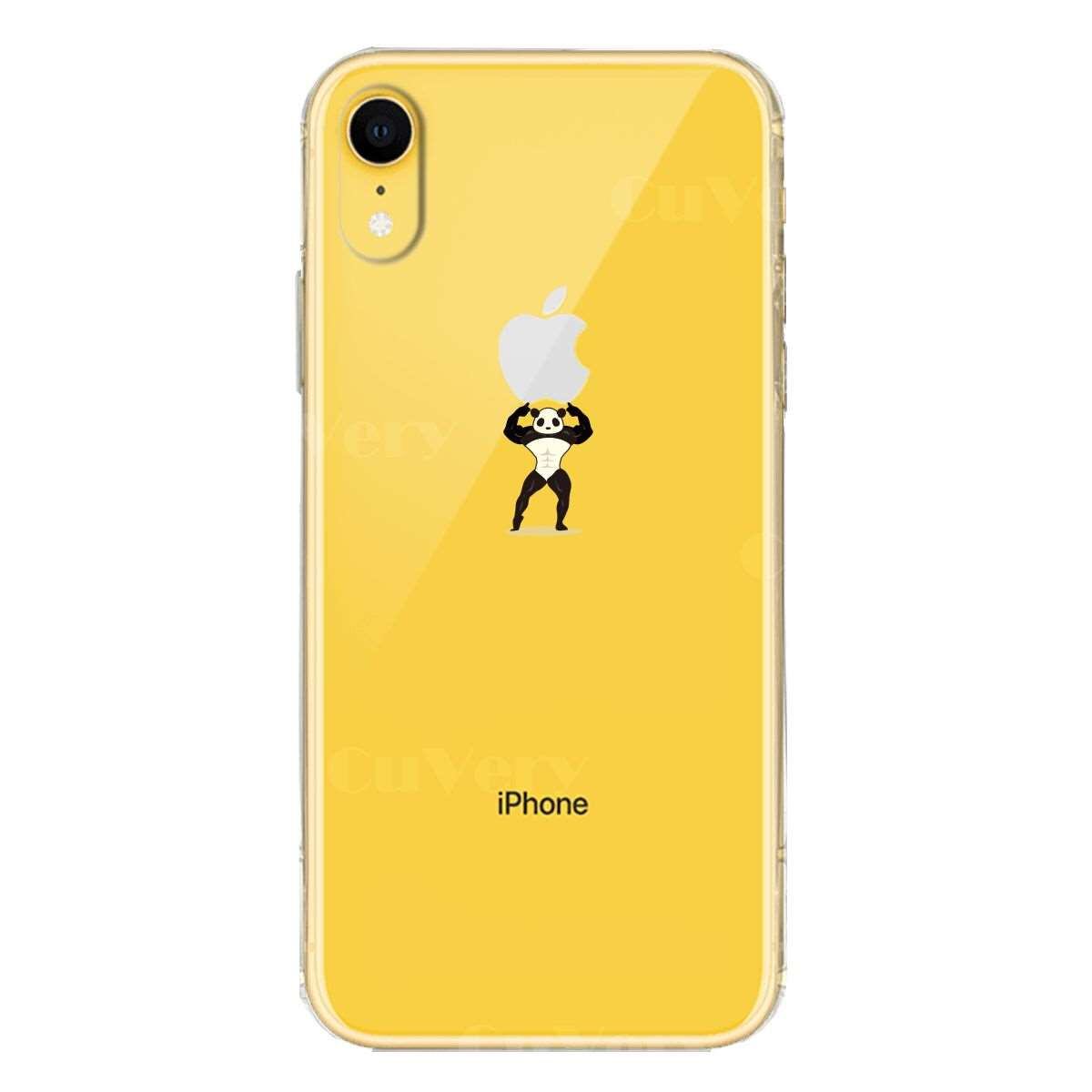 iPhoneXR ワイヤレス充電対応 ソフト クリア 透明 ケース カバー パンダ 重量挙げ まっちょ 感