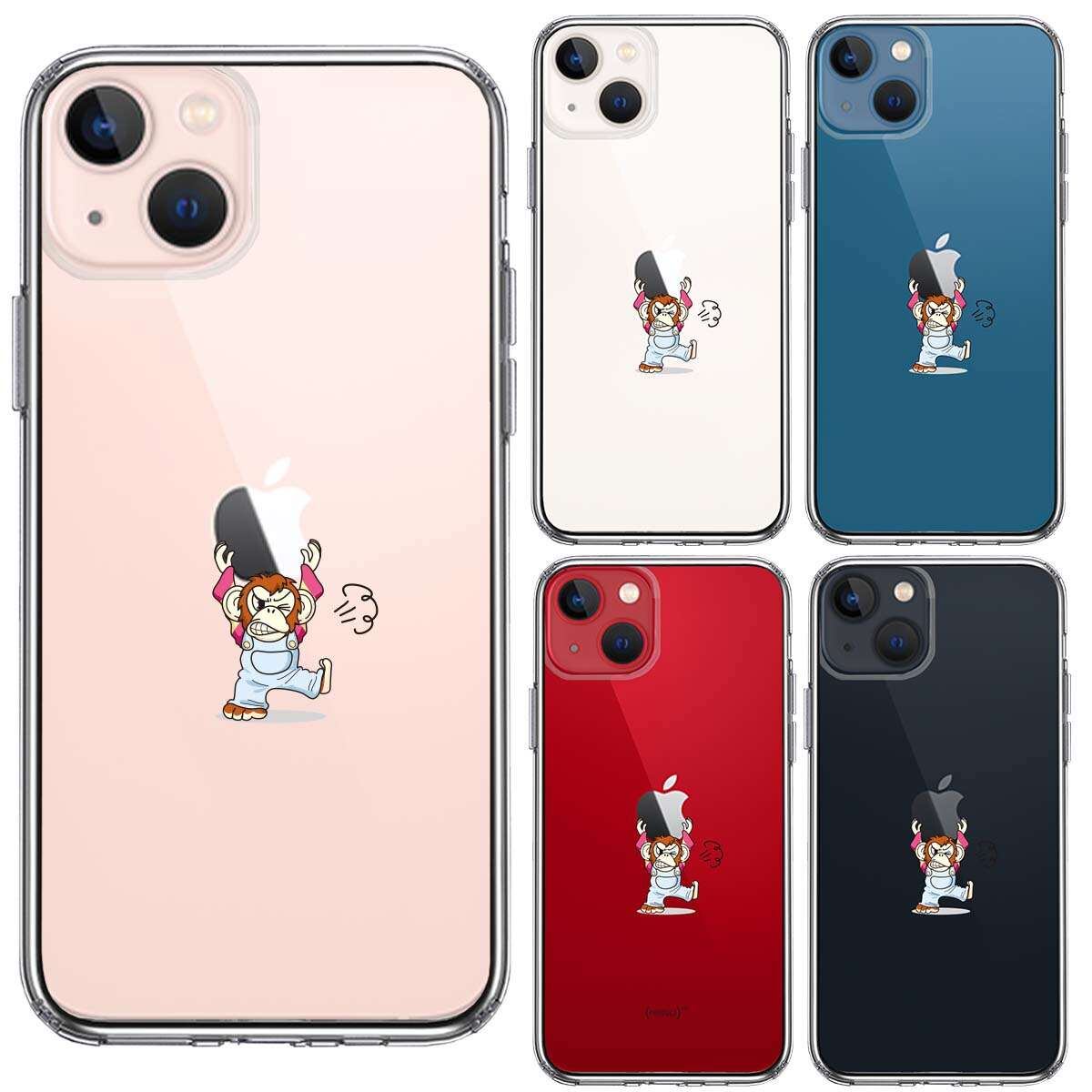 iPhone13 側面ソフト 背面ハード ハイブリッド クリア ケース チンパンジー アップル 重量挙げ