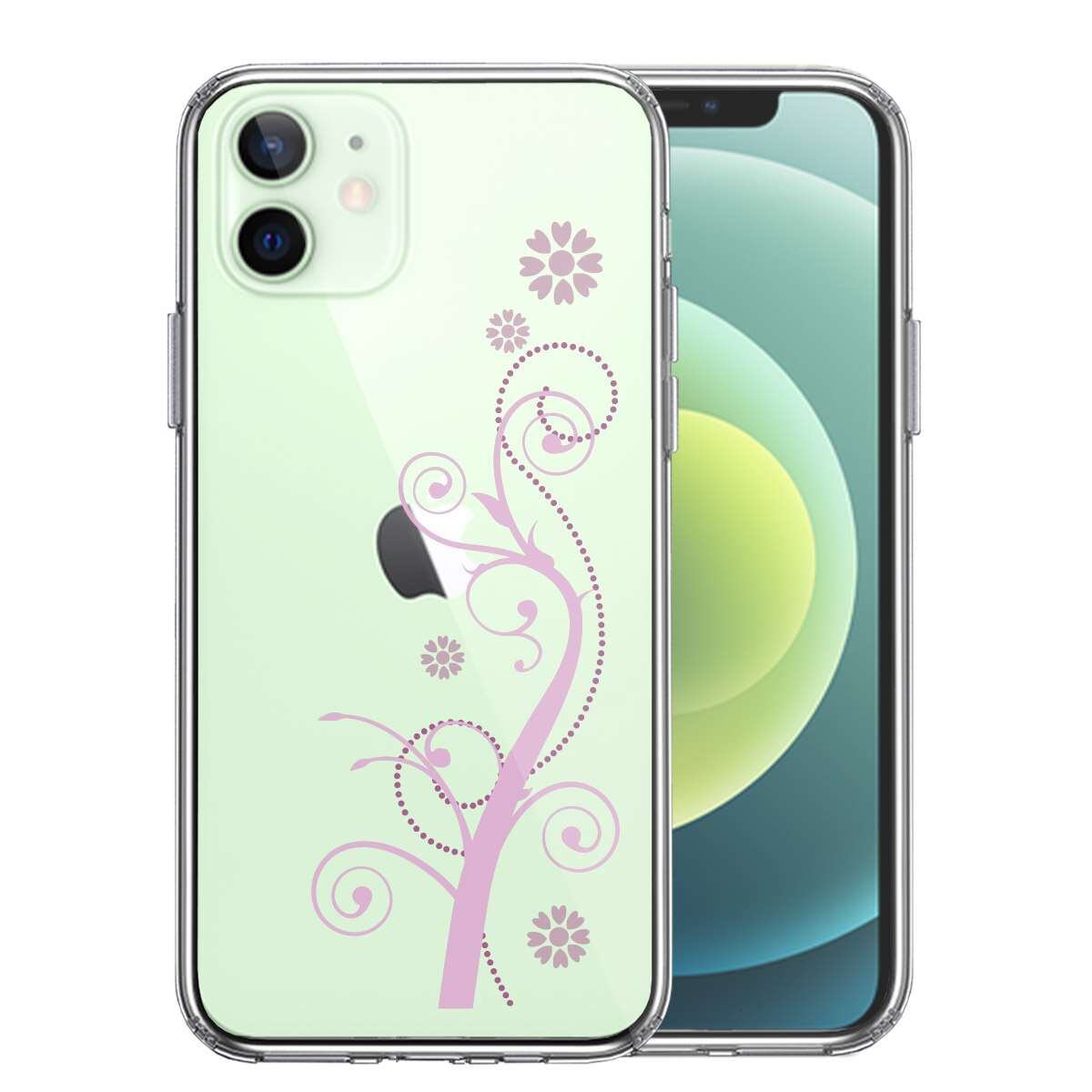 iPhone12mini 側面ソフト 背面ハード ハイブリッド クリア ケース フローラル つる模様 パープル