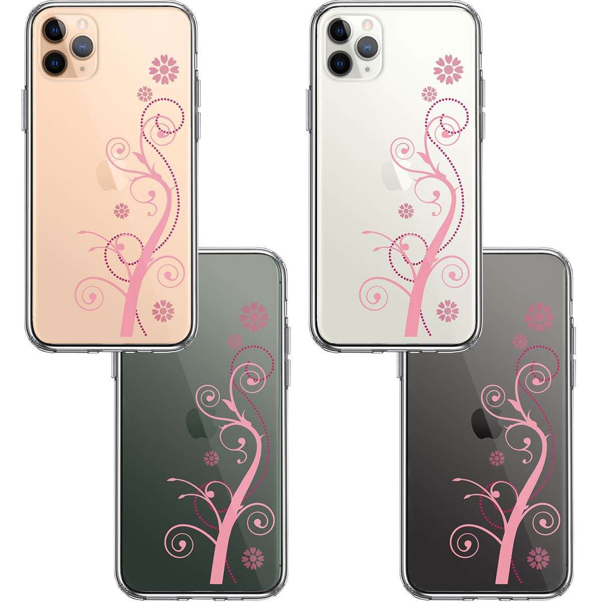 iPhone11pro 側面ソフト 背面ハード ハイブリッド クリア ケース フローラル つる模様 (ピンク)