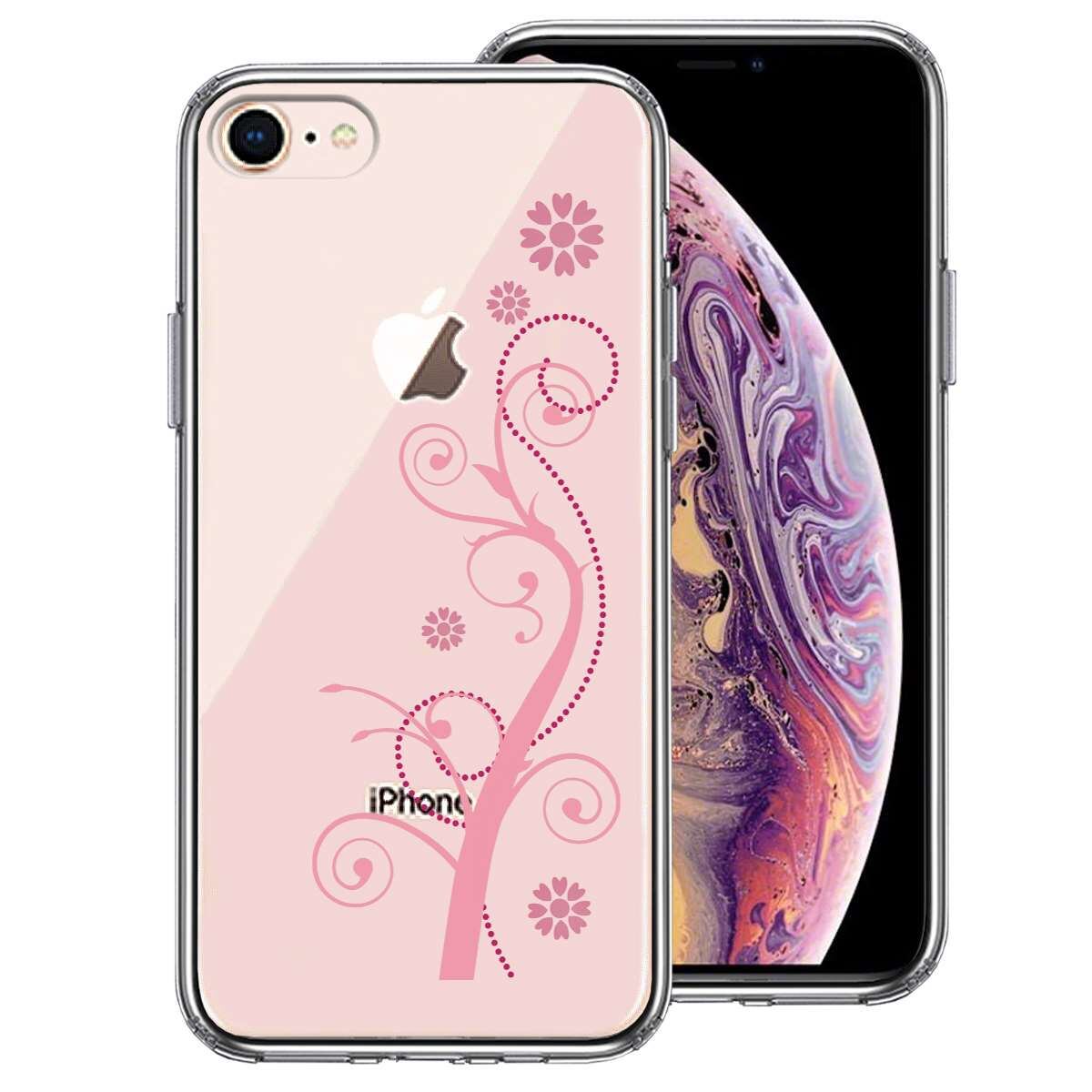 iPhone7 iPhone8 兼用 側面ソフト 背面ハード ハイブリッド クリア ケース フローラル つる模様 ピンク