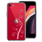 iPhoneSE(第3 第2世代) 側面ソフト 背面ハード ハイブリッド クリア ケース フローラル つる模様 ピンク