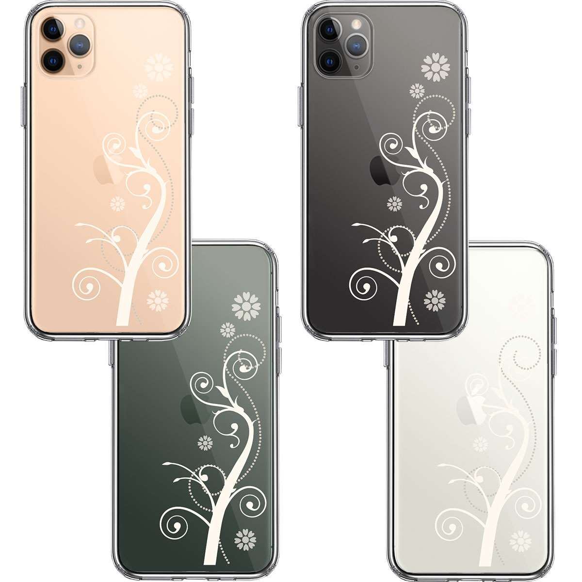 iPhone11pro 側面ソフト 背面ハード ハイブリッド クリア ケース フローラル つる模様 (ホワイト)