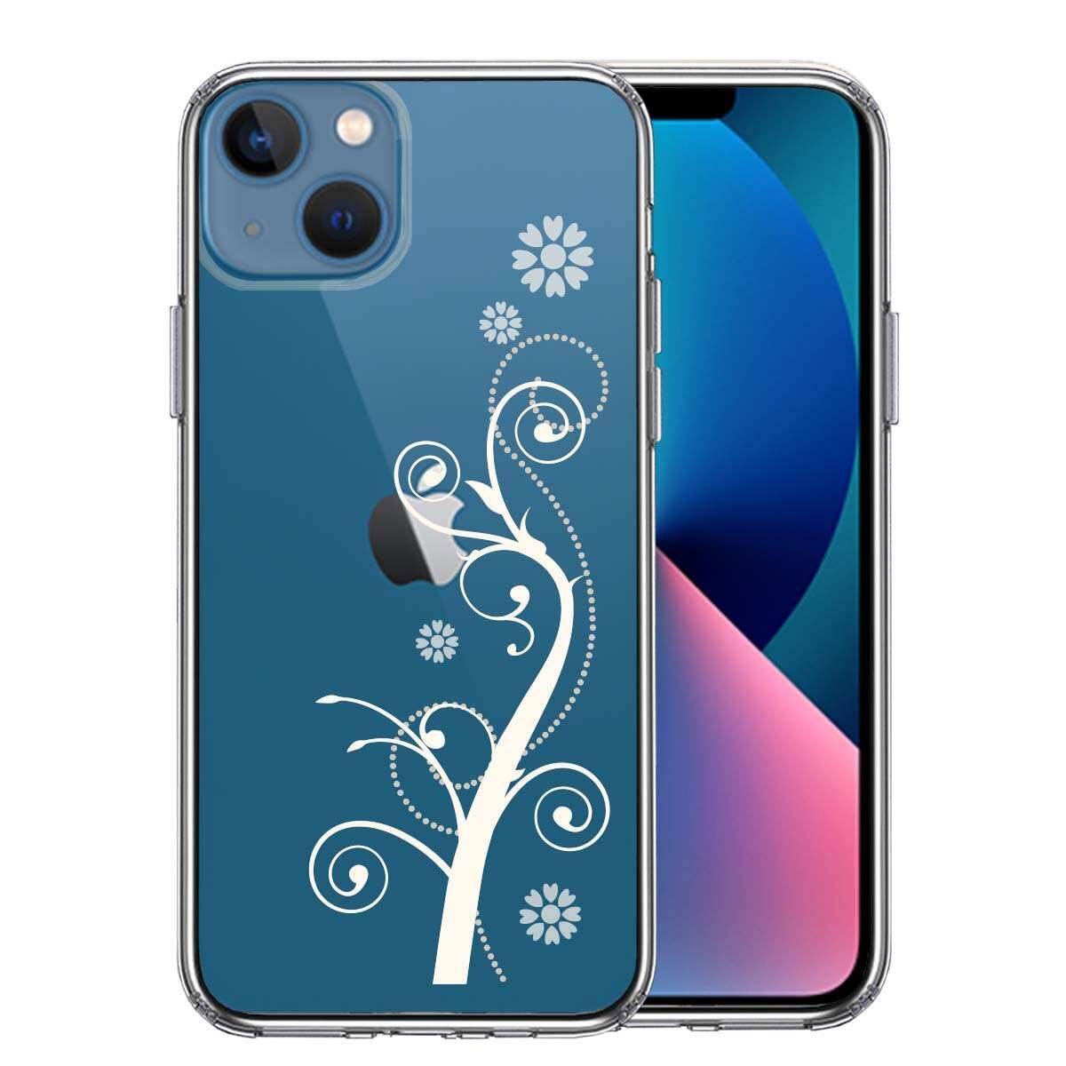 iPhone13mini 側面ソフト 背面ハード ハイブリッド クリア ケース フローラル つる模様 ホワイト