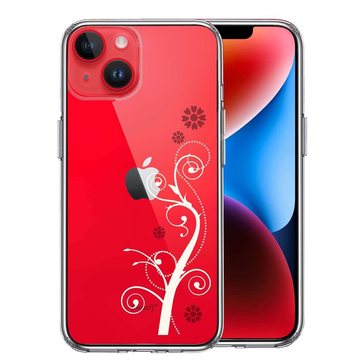 iPhone 14 Plus 側面ソフト 背面ハード ハイブリッド クリア ケース フローラル つる模様 ホワイト