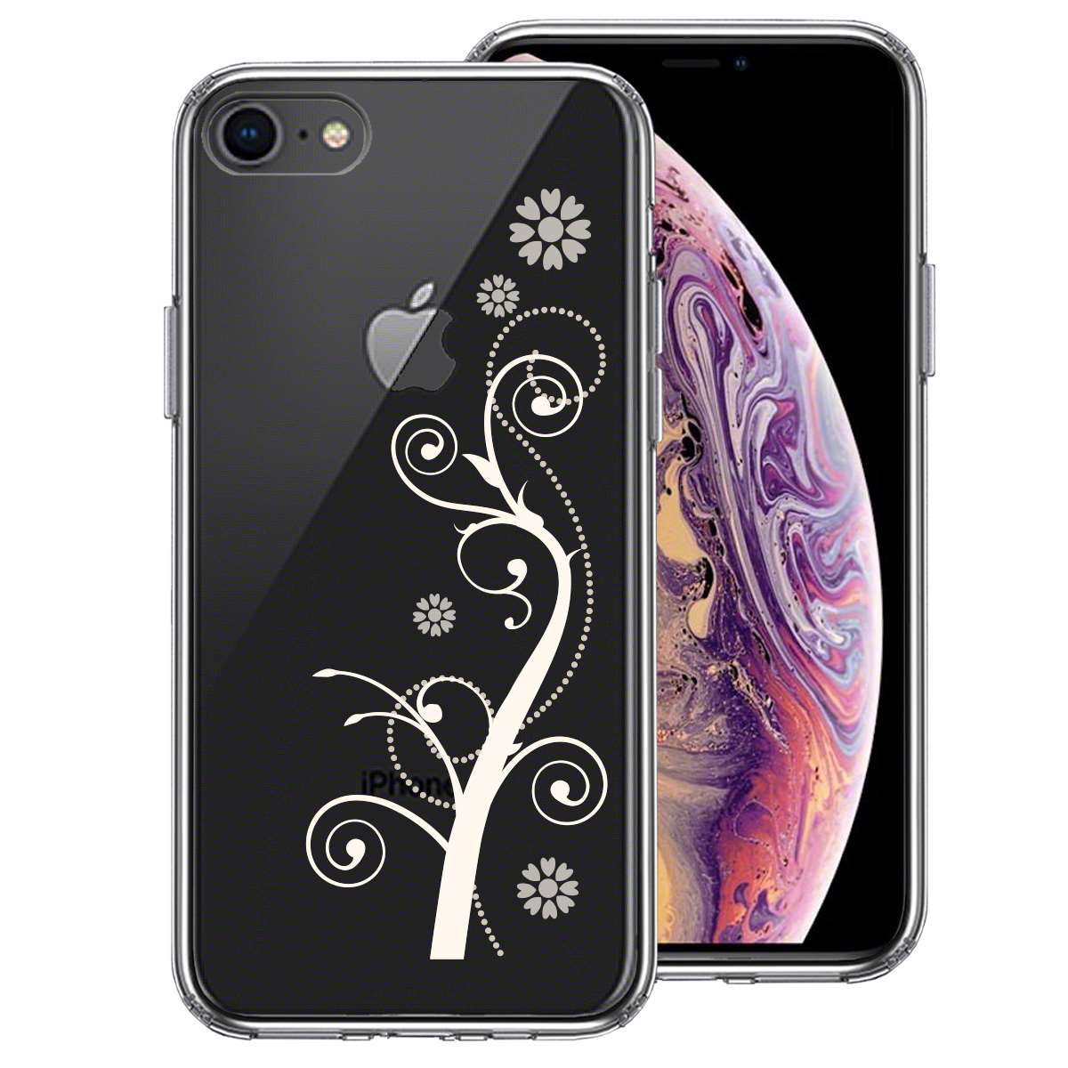 iPhone7 iPhone8 兼用 側面ソフト 背面ハード ハイブリッド クリア ケース フローラル つる模様 ホワイト