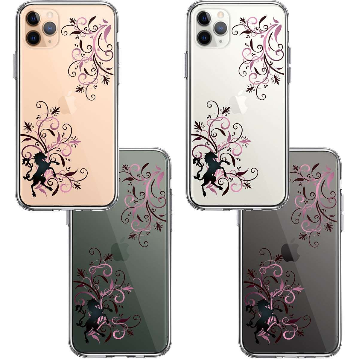 iPhone11pro 側面ソフト 背面ハード ハイブリッド クリア ケース フローラル & ユニコーン (ピンク)