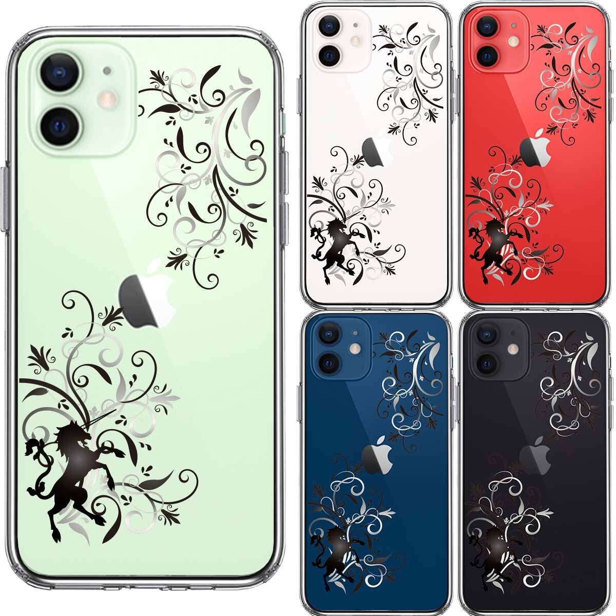 iPhone12 側面ソフト 背面ハード ハイブリッド クリア ケース フローラル ユニコーン グレー
