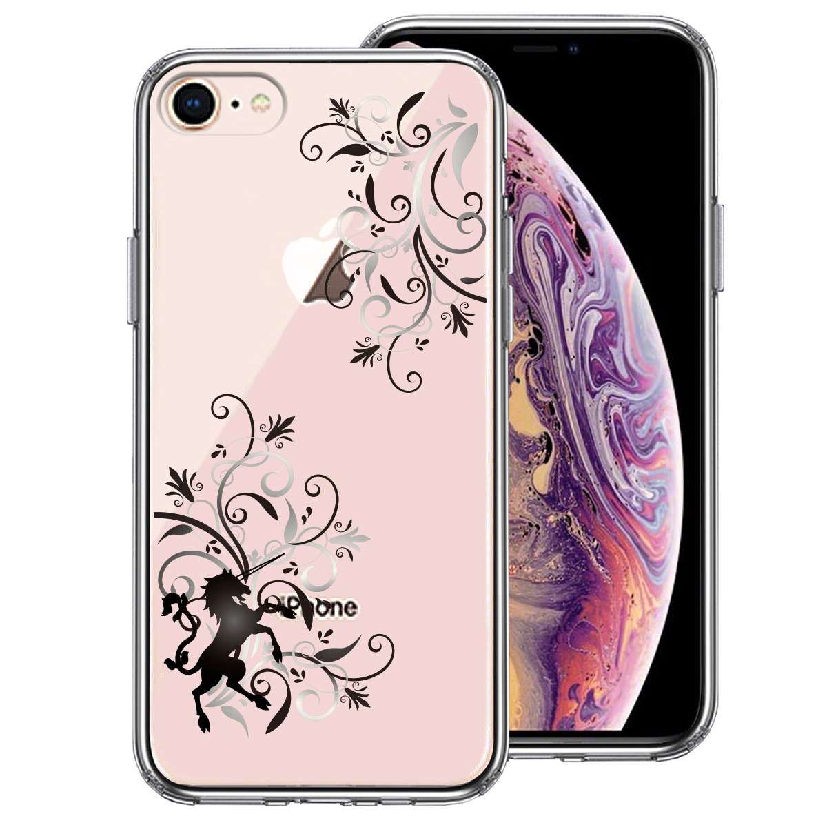 iPhone7 iPhone8 兼用 側面ソフト 背面ハード ハイブリッド クリア ケース フローラル ユニコーン グレー
