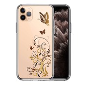 iPhone11pro 側面ソフト 背面ハード ハイブリッド クリア ケース フローラル & バタフライ (ブラウン)