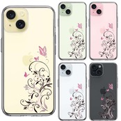 iPhone15 側面ソフト 背面ハード ハイブリッド クリア ケース フローラル バタフライ (ピンク)