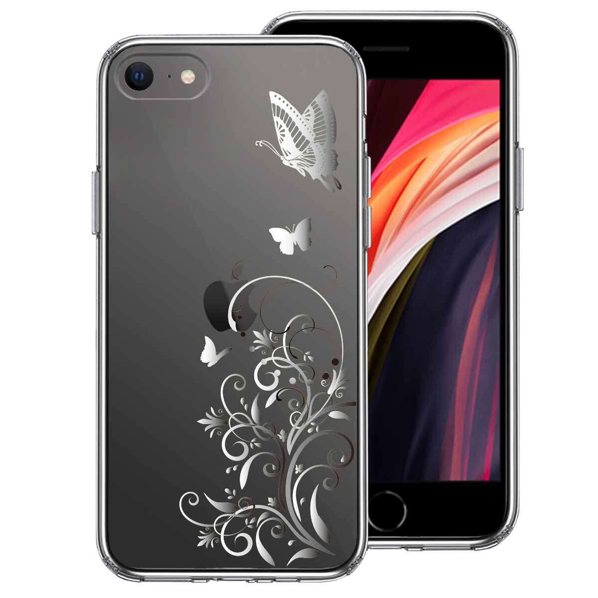 iPhoneSE(第3 第2世代) 側面ソフト 背面ハード ハイブリッド クリア ケース フローラル バタフライ グレー