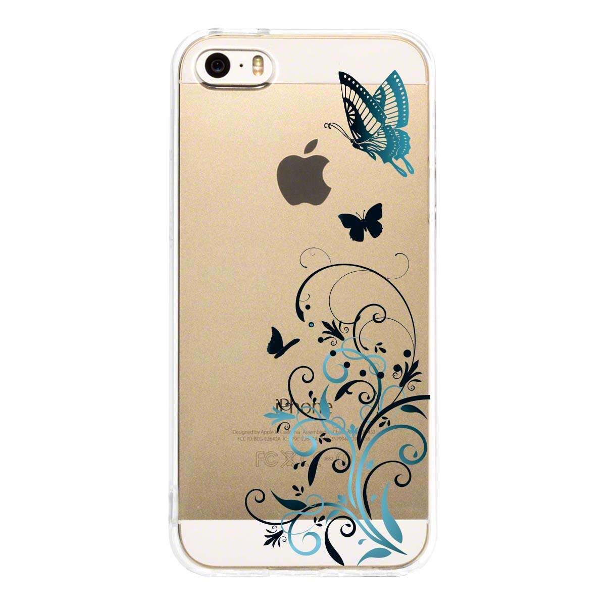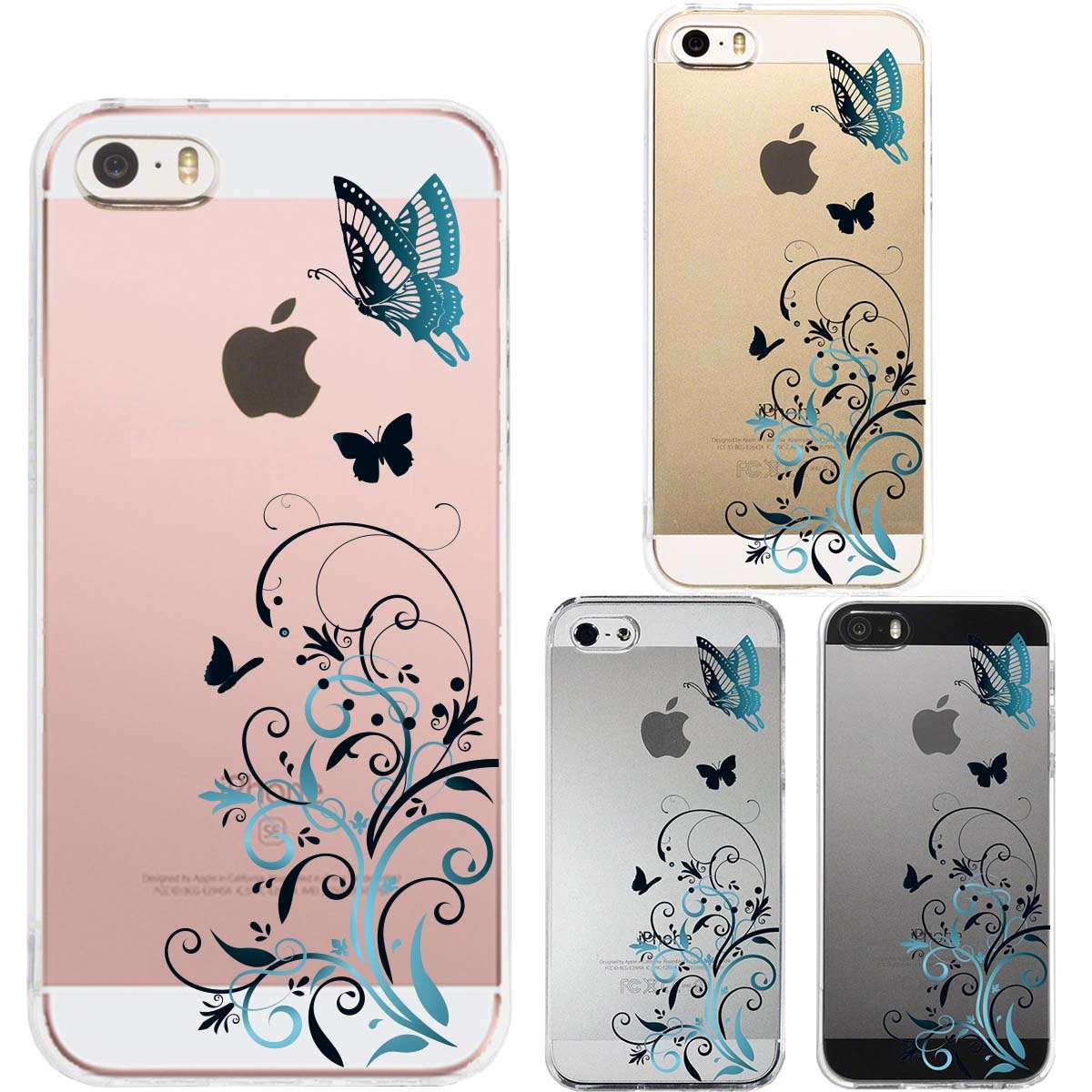 iPhone SE 5S/5 対応 アイフォン ハード クリア ケース フローラル & バタフライ (ブルー)