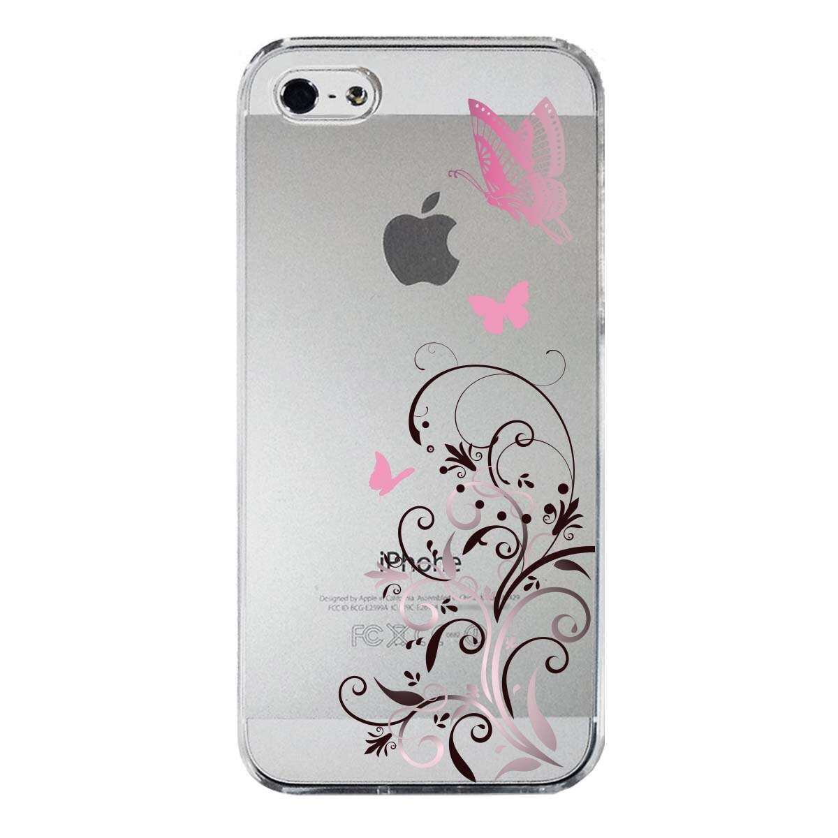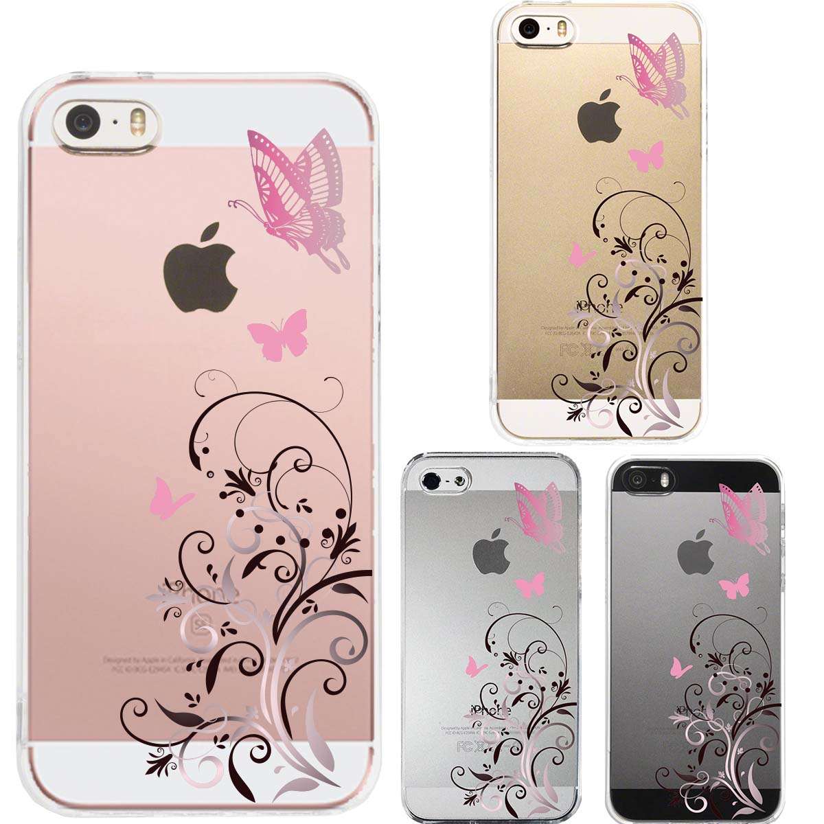 iPhone SE 5S/5 対応 アイフォン ハード クリア ケース カバー フローラル & バタフライ (ピンク)