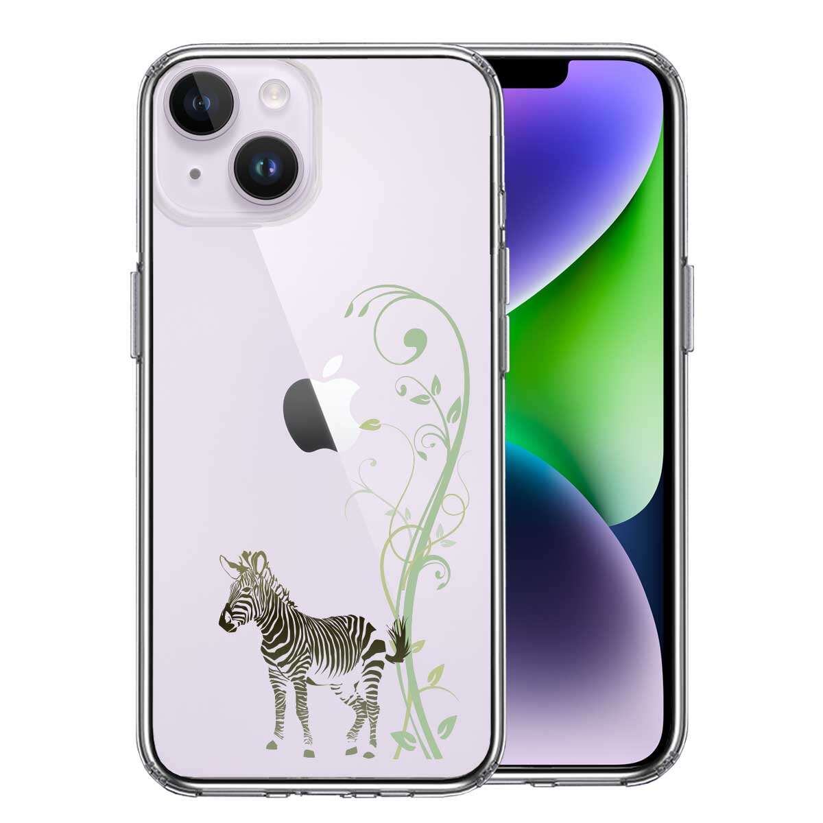 iPhone 14 Plus 側面ソフト 背面ハード ハイブリッド クリア ケース フローラル ゼブラ グリーン