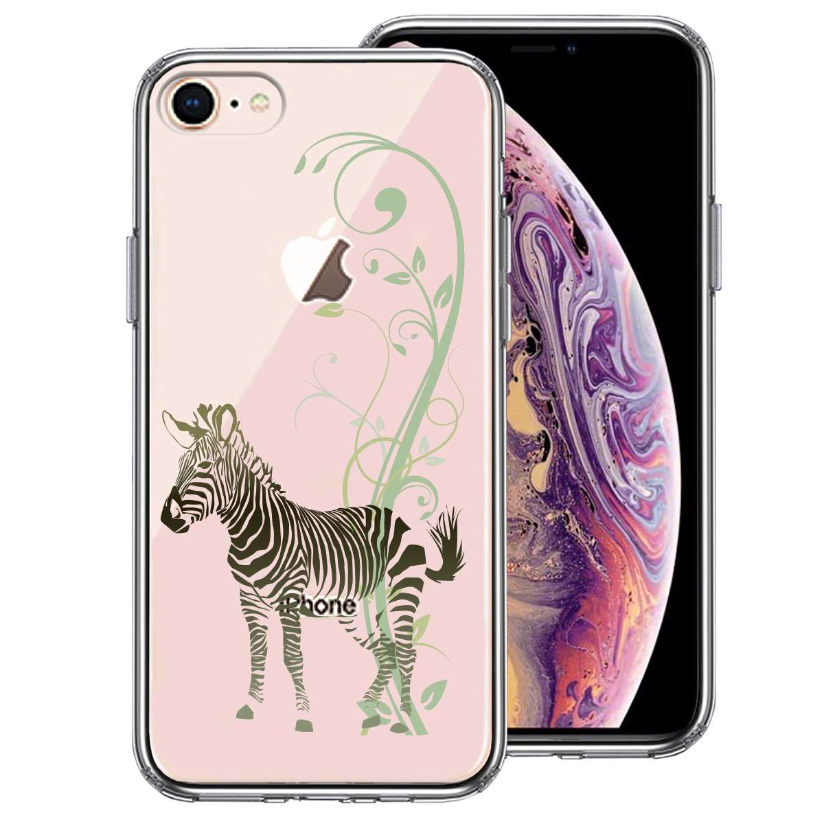 iPhone7 iPhone8 兼用 側面ソフト 背面ハード ハイブリッド クリア ケース フローラル ゼブラ グリーン