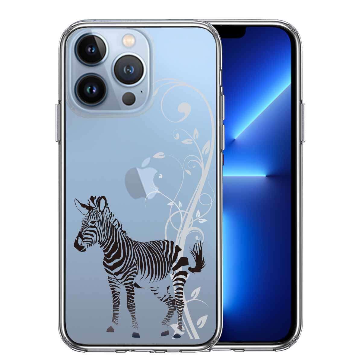iPhone13 Pro 側面ソフト 背面ハード ハイブリッド クリア ケース フローラル ゼブラ ブラック