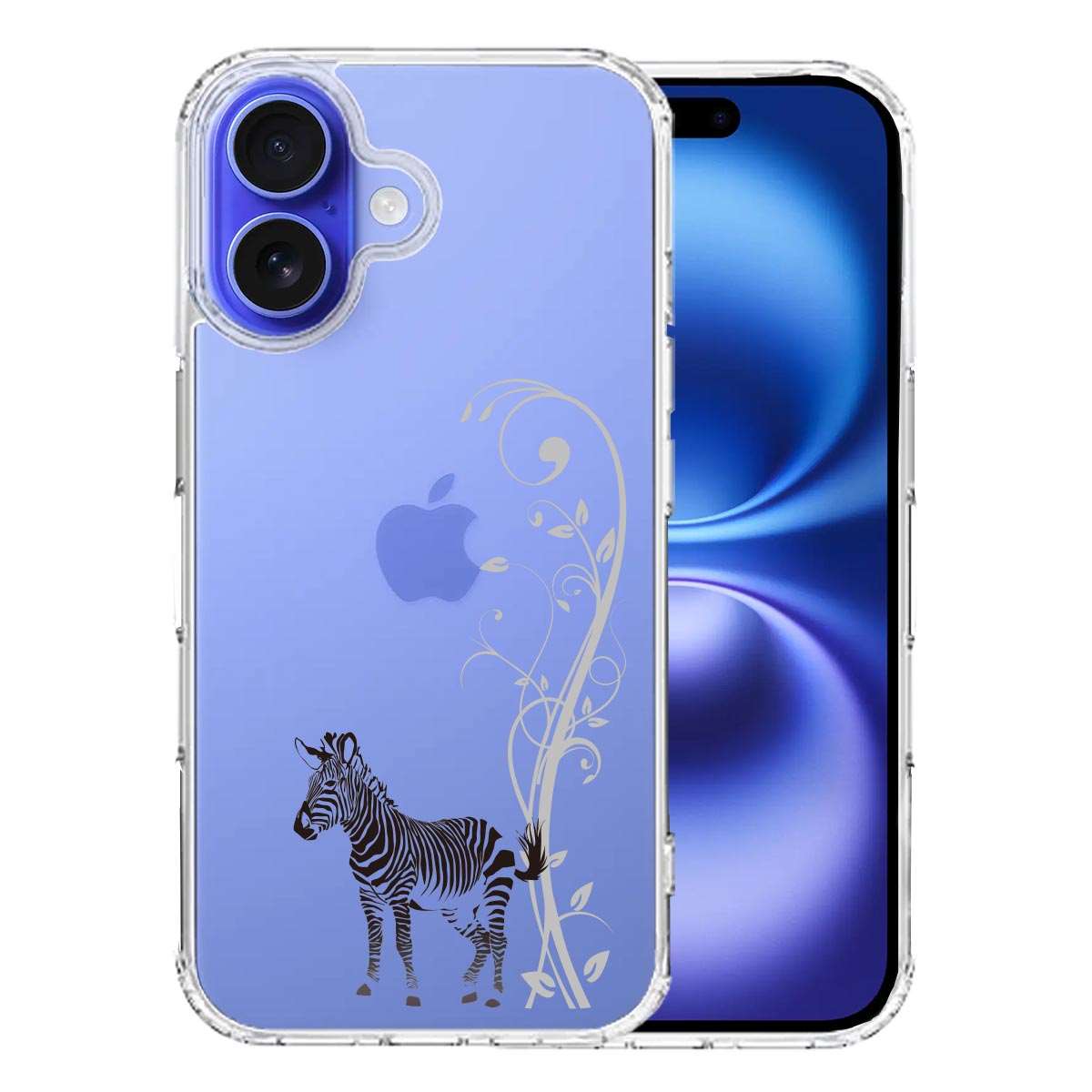 iPhone16 側面ソフト 背面ハード ハイブリッド クリア ケース フローラル ゼブラ ブラック