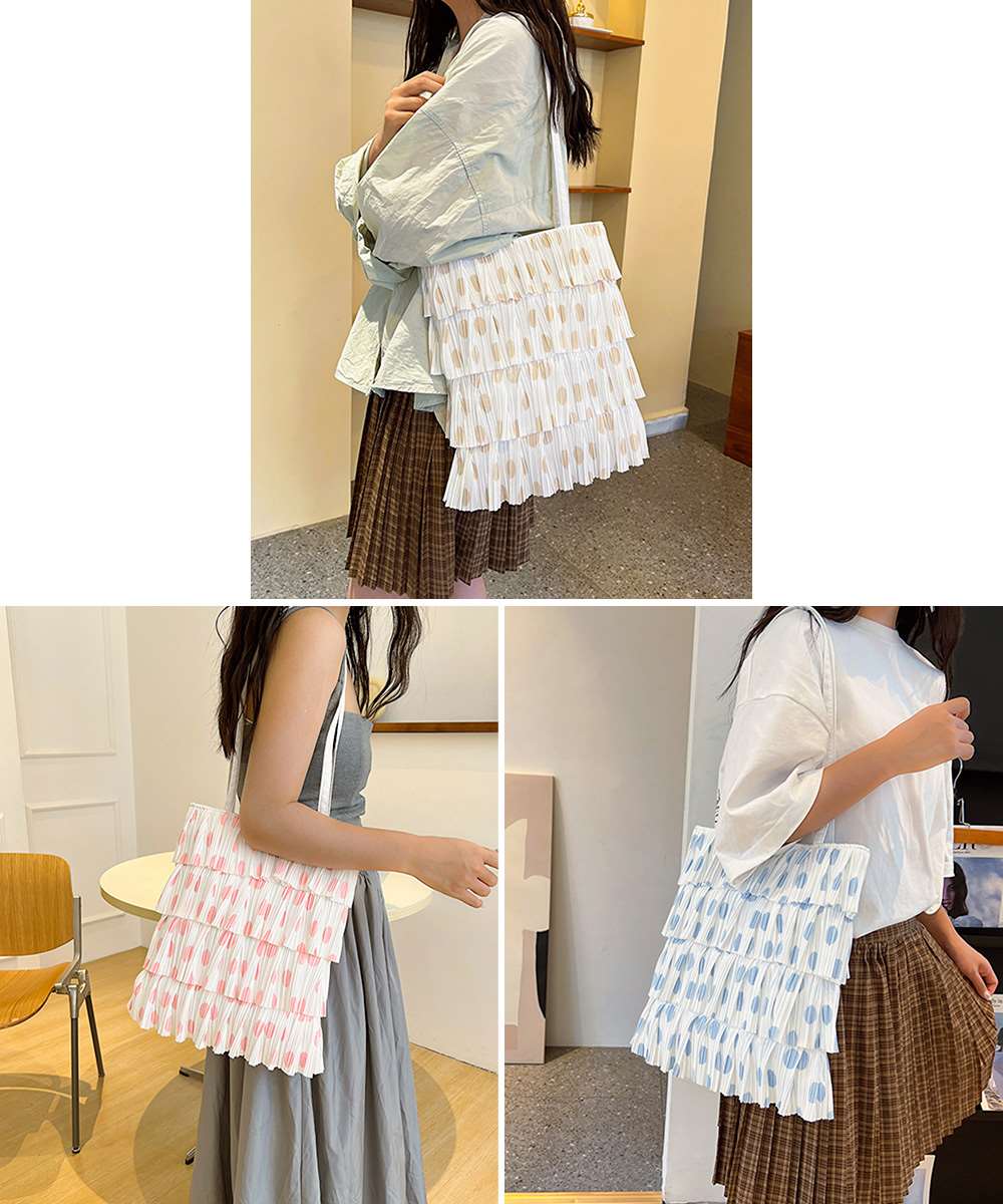 大人可愛いプリーツトート カジュアルきれいめ 肩掛けバッグ 大容量 韓国風バッグ おしゃれ 女性 ティアードバッグ 軽量