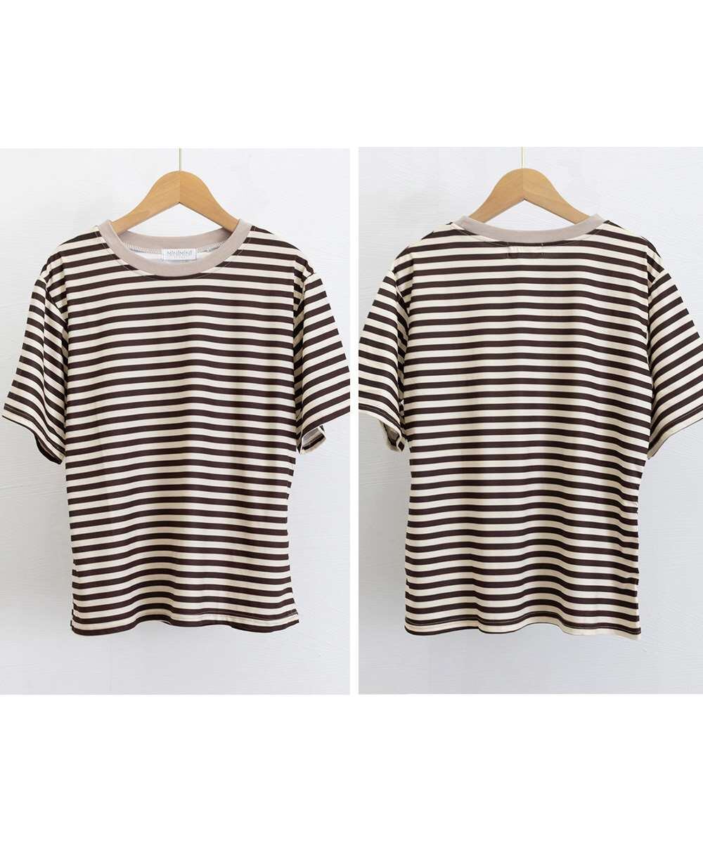 爽やかなボーダー柄が目を引く半袖Tシャツ。