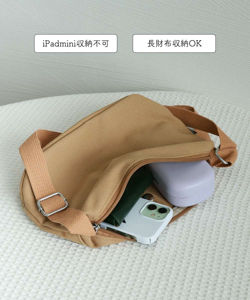 しっかりとした帆布素材で、軽くて持ちやすく、スマホ・ミニ財布・リップなどの必需品をすっきり収納できる