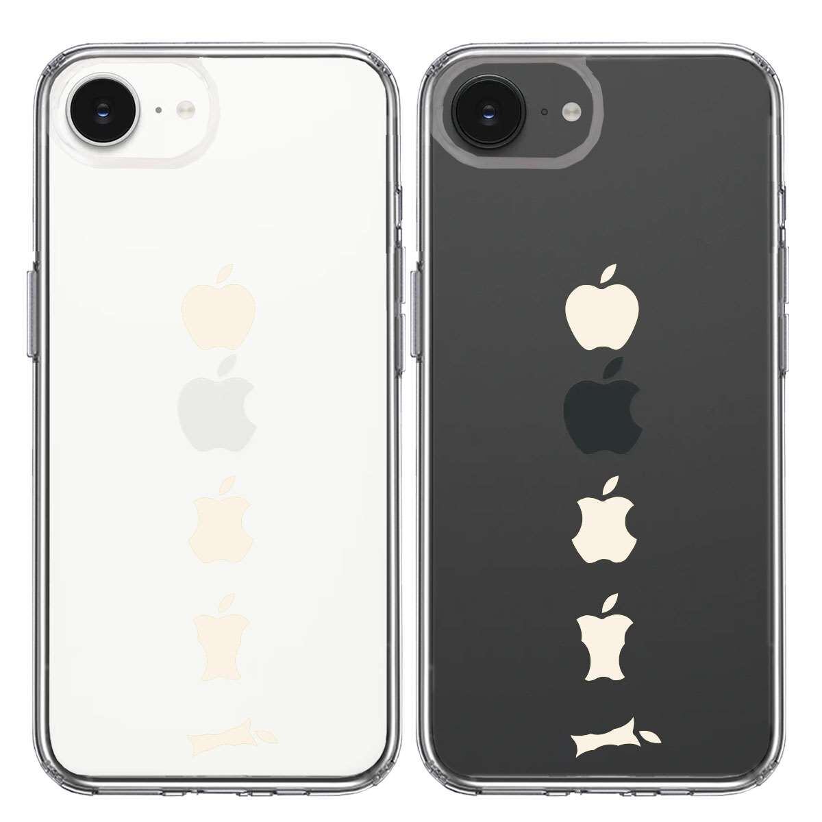 iPhone16e 側面ソフト 背面ハード ハイブリッド クリア ケース 食べられるリンゴ ホワイト