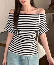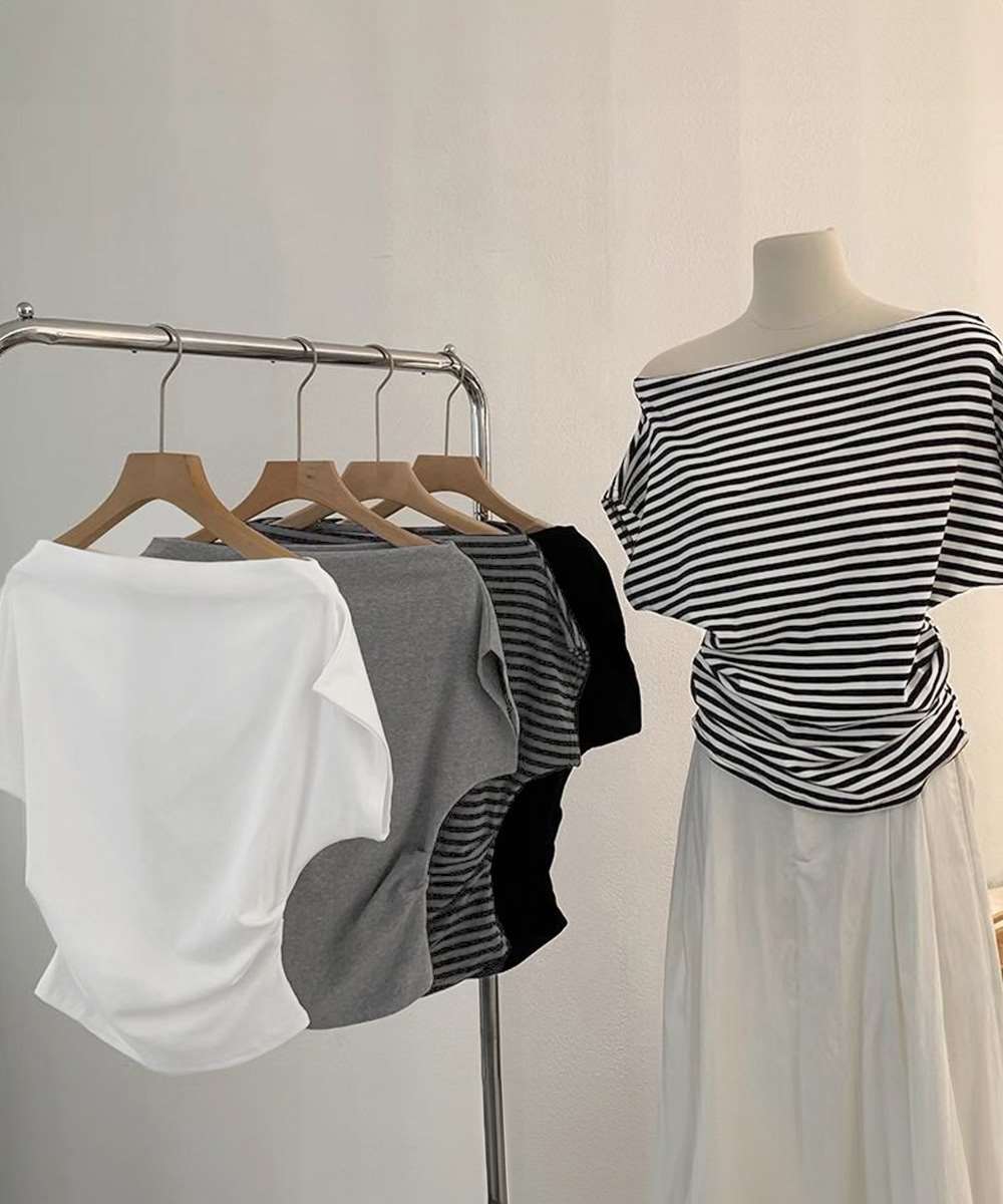 キーワード:肩出しトップス無地 シンプルカットソー 韓国風T無地着やせ