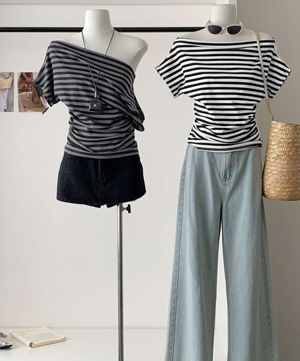 オフショルダー カットソー サイドギャザー