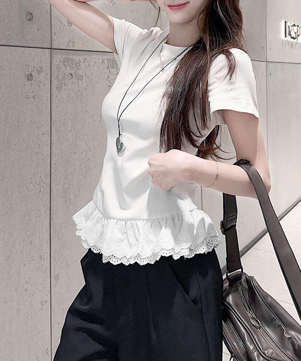 キーワード:プチプラ大人可愛い 半袖Tシャツ清楚白 フェミニンコーデ