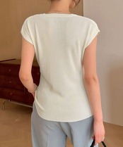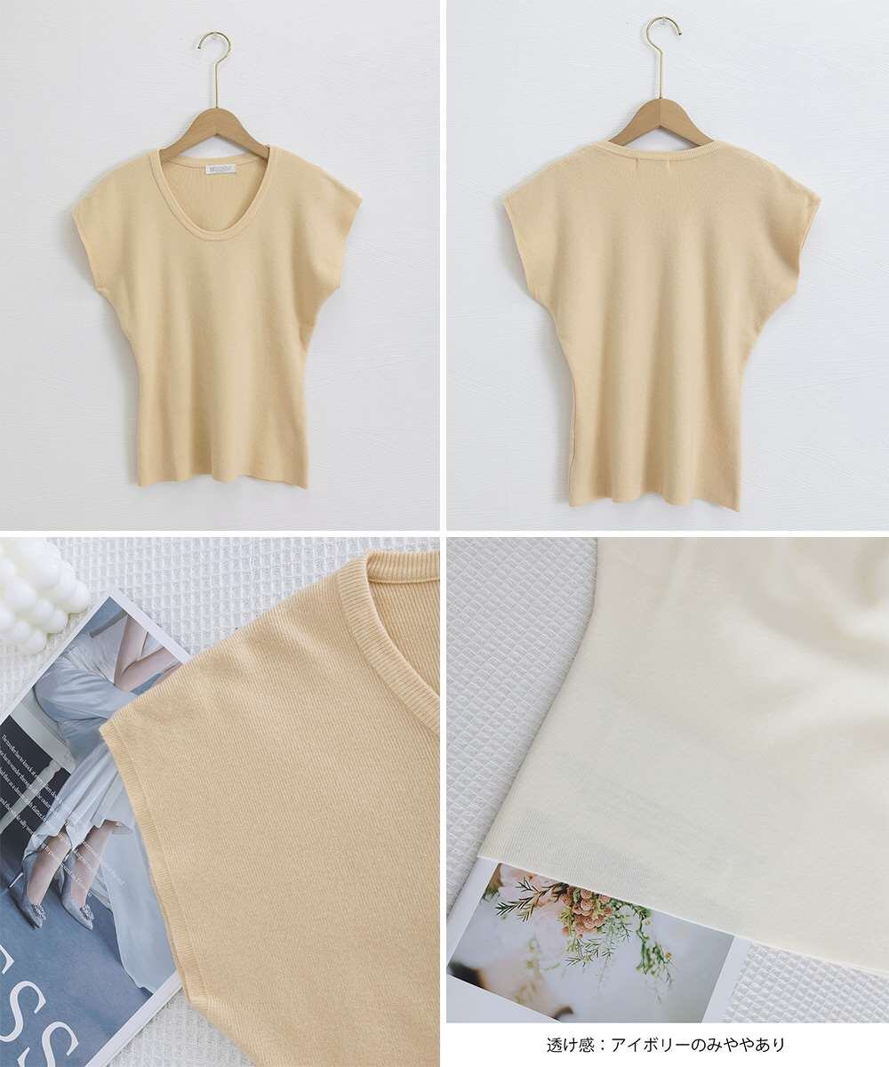 シンプルなデザインで、着回しやすいUネックニットTシャツ。