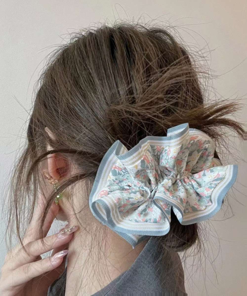 キーワード:ヘアゴム跡つかない 花柄髪留め 女子会 大人っぽいシュシュ