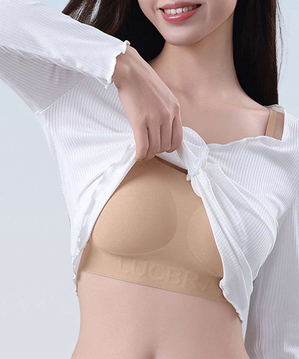 肌に溶け込むようなカラーが魅力のノンワイヤーブラジャー。