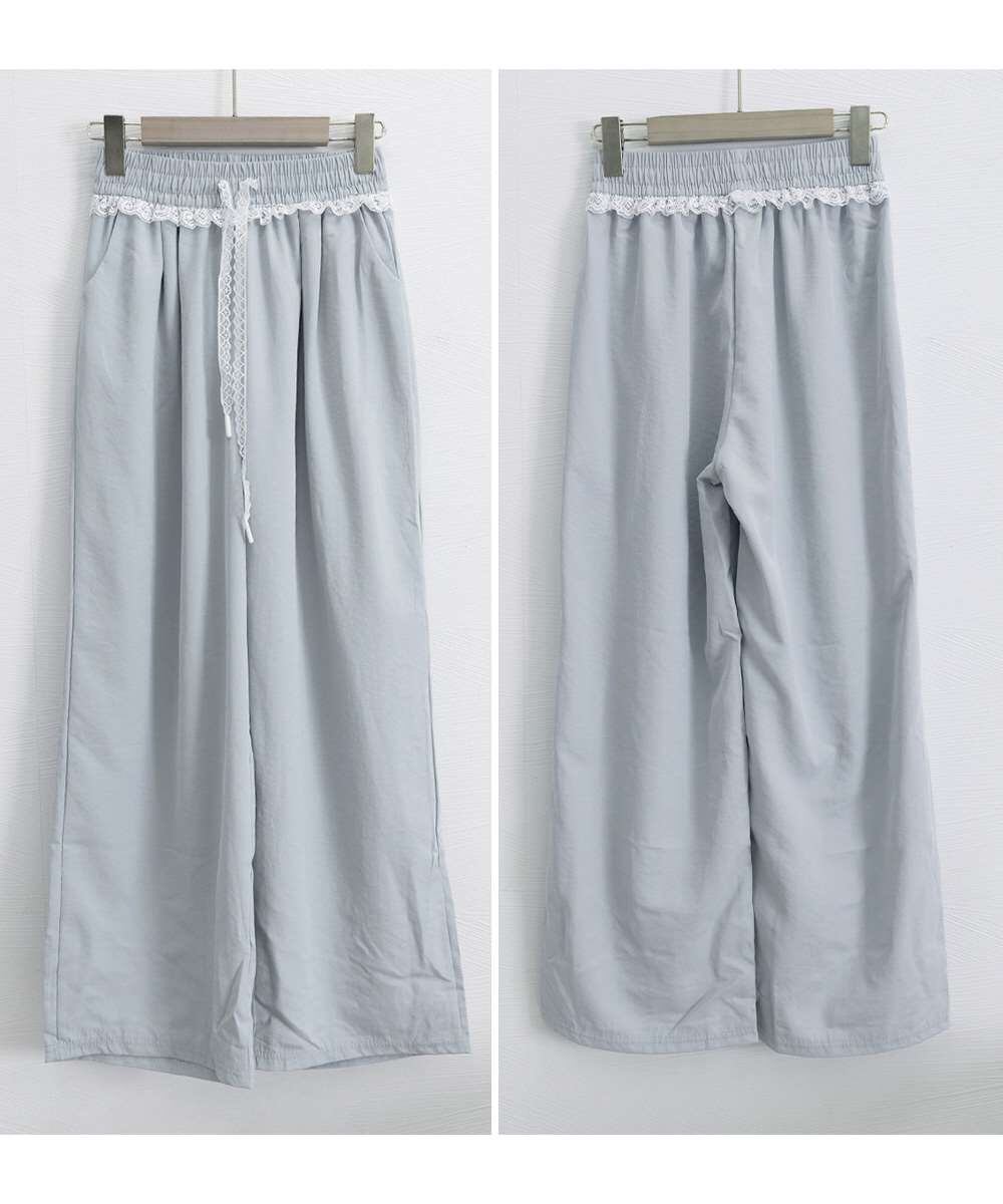 ウエスト部分の繊細なレースディテールと細めのリボンがガーリーさを演出。