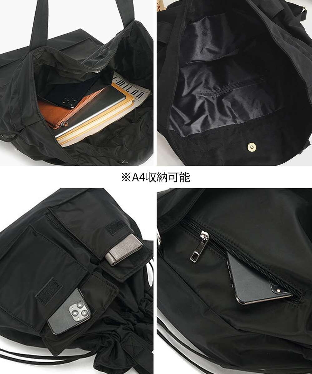 肩掛け・リュック・手提げの3WAY仕様で、コーデやシーンに合わせて自由に使い分け可能。