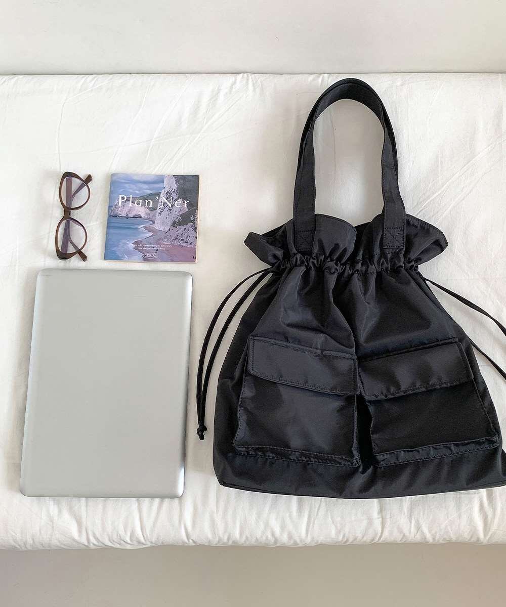 巾着のようにキュッと絞れ、中身が零れ落ちる心配はなく開け閉めも簡単楽ちん。