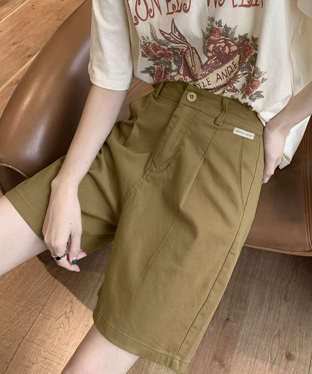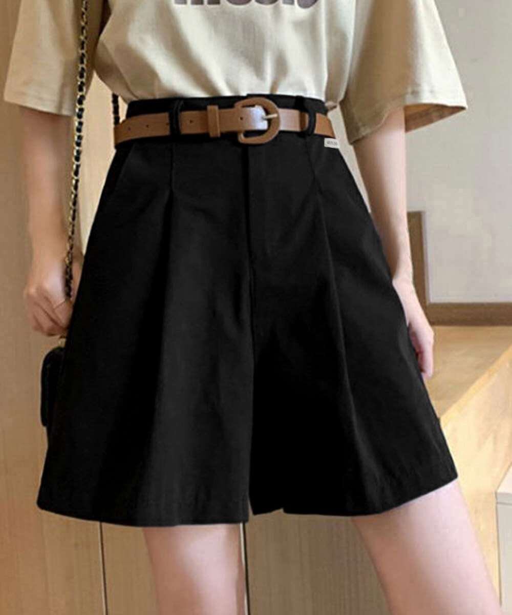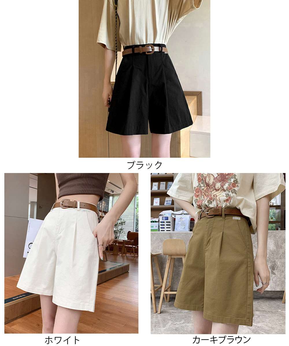 ベルト付きでコーデのアクセントになる、ハイウエストのタックショートパンツ。