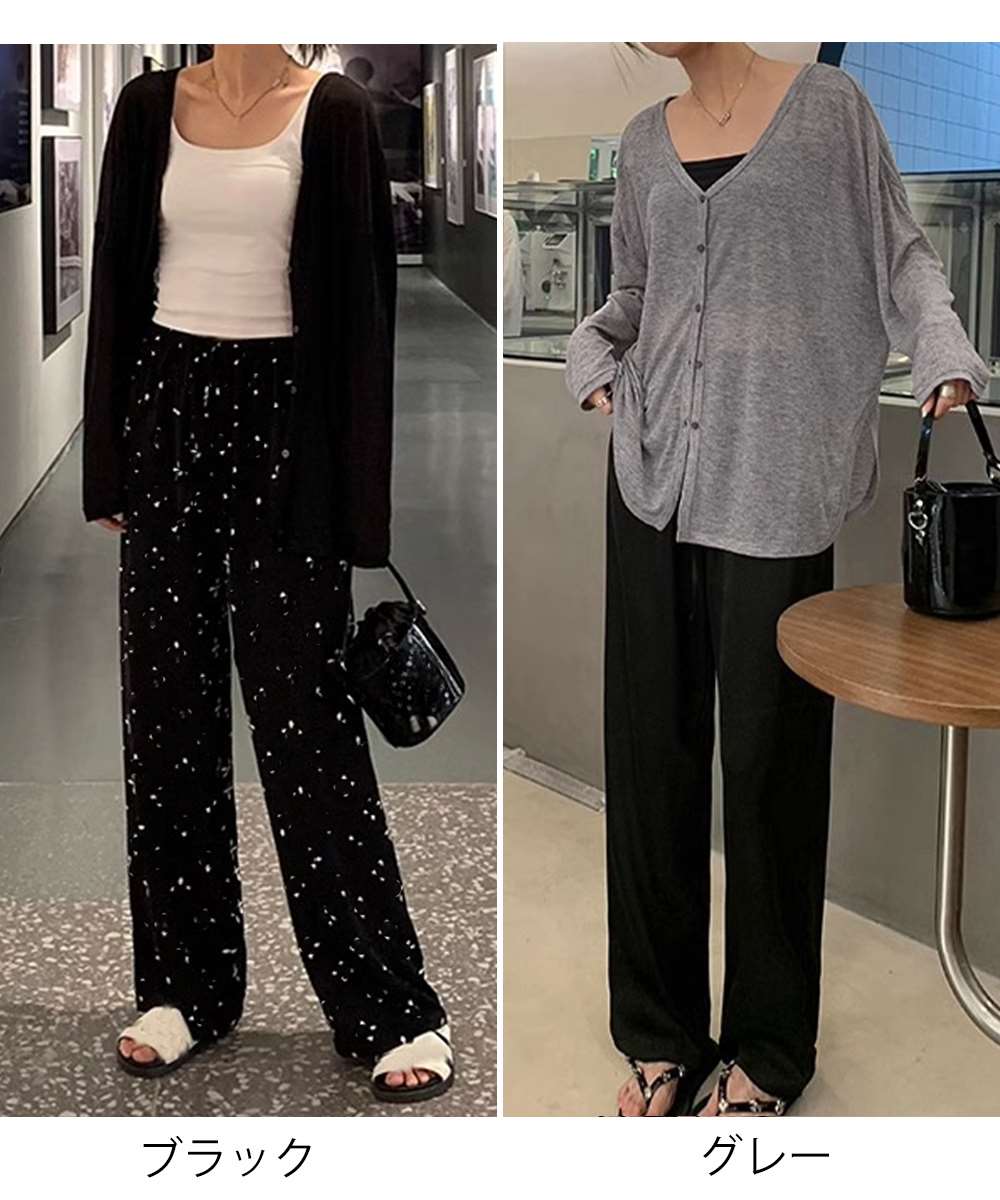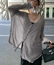 シンプルなデザインが落ち着いた印象を与える、薄手のレディースカーディガン。