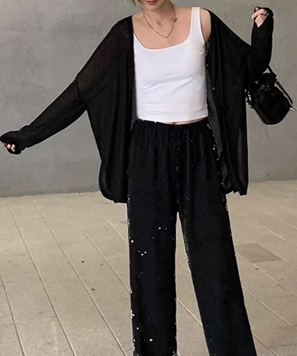 キーワード:おしゃれ体型カバー 日焼け対策トップス ミディアム丈カーデ