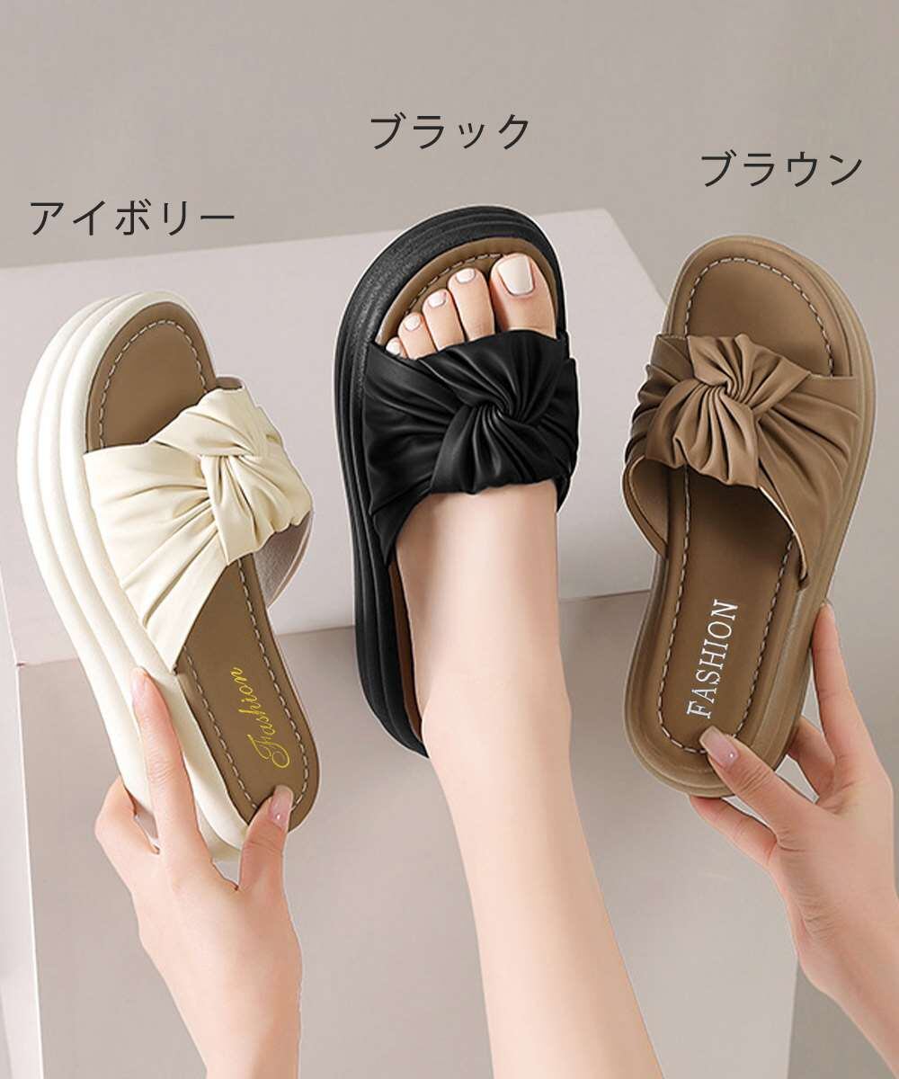 ボリュームソールが印象的な、リボンデザインのサンダル。