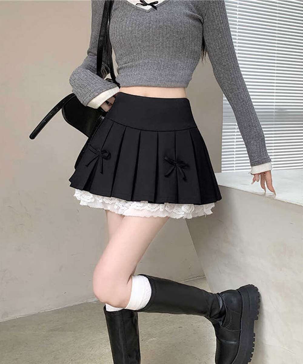 大人気のミニ丈スカートシリーズに、リボン付きプリーツスカートが仲間入り。