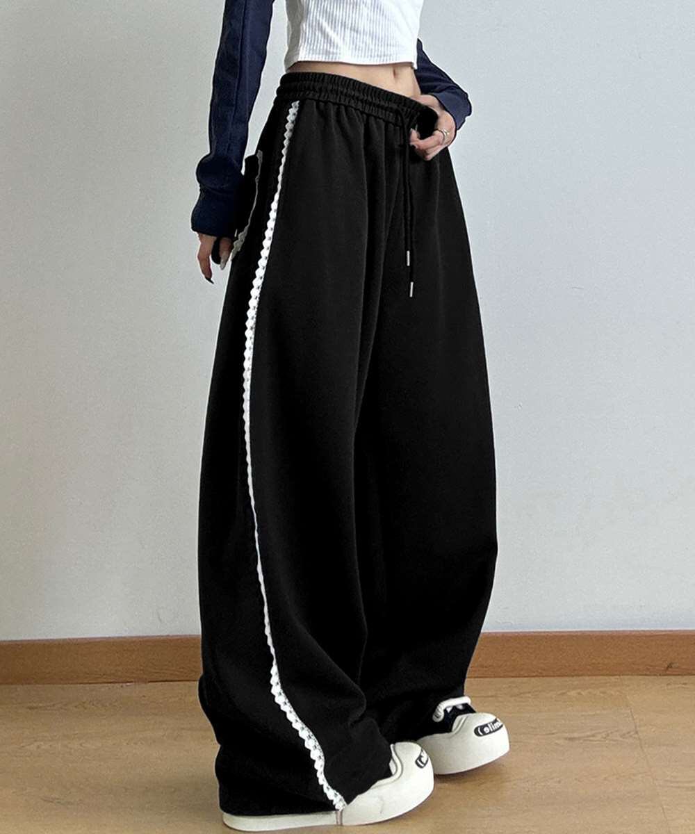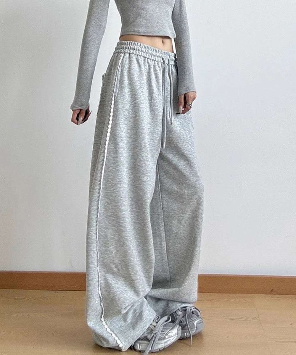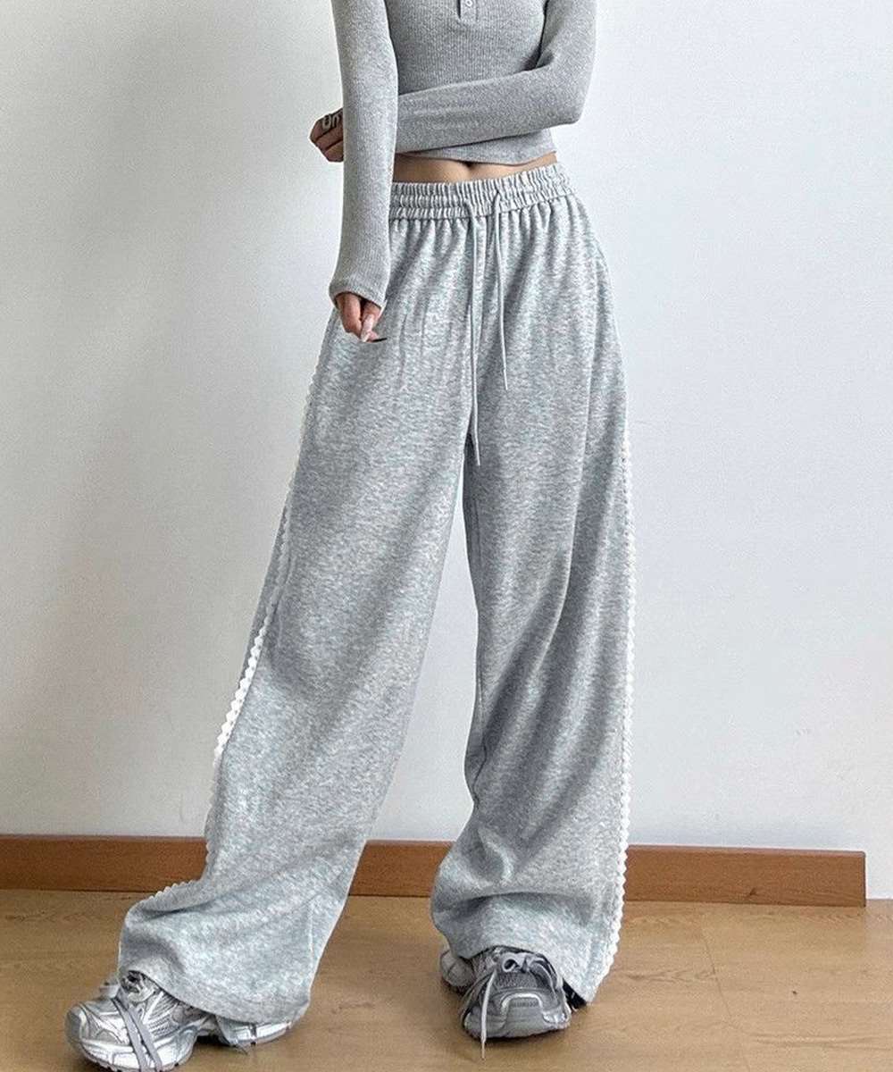 カジュアルな中に、さりげない甘さを添えたスウェットパンツ。
