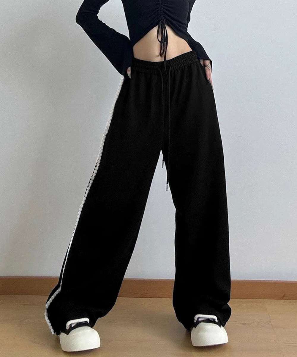カジュアルパンツ黒 着やせロングパンツ ダンスボトムス脚長