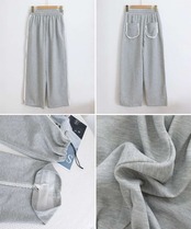 ウエストはゴムと紐の仕様で、リラックス感があり、ストレスフリーな着心地。
