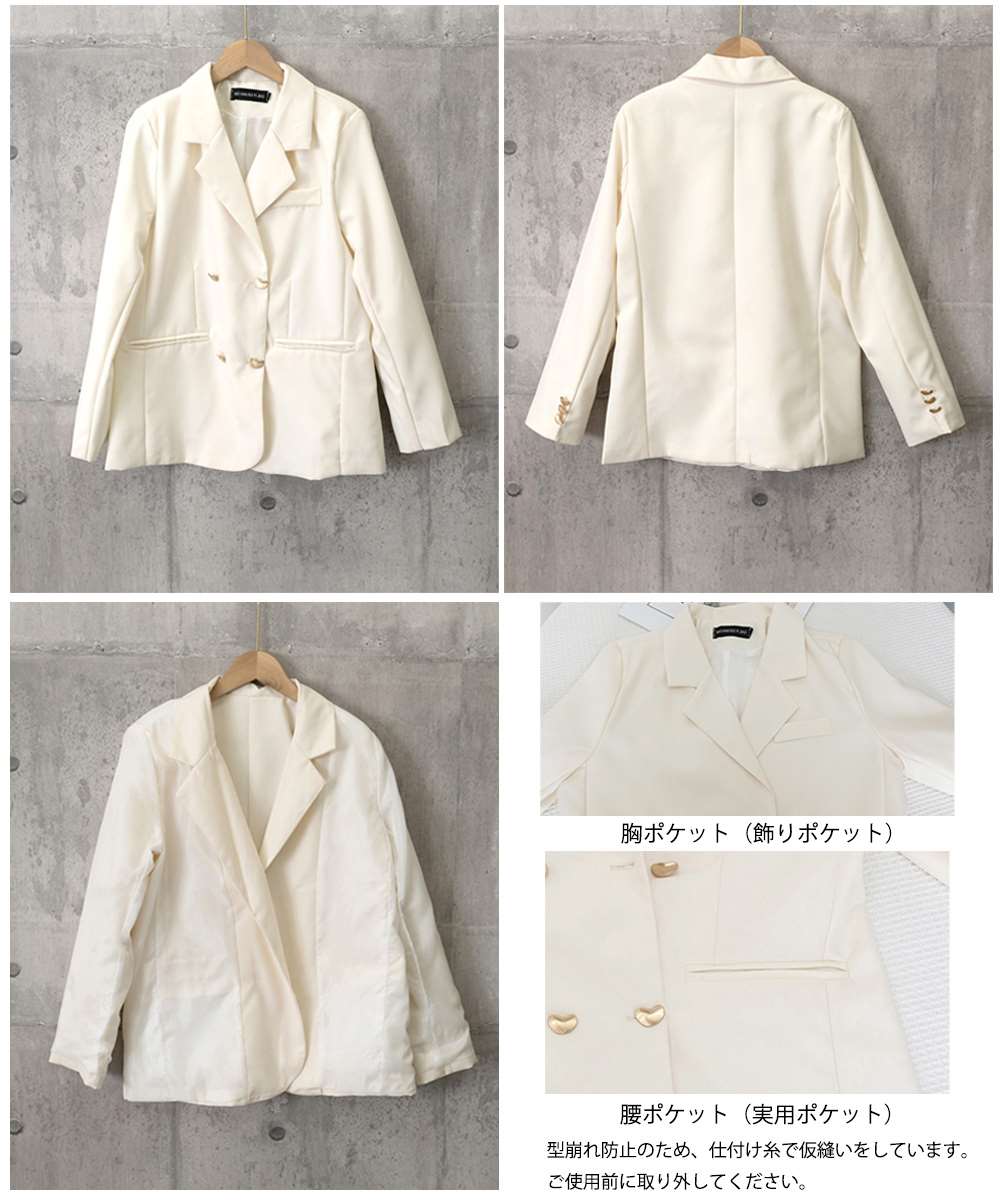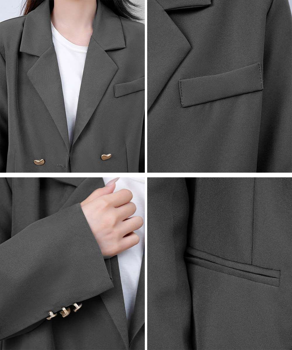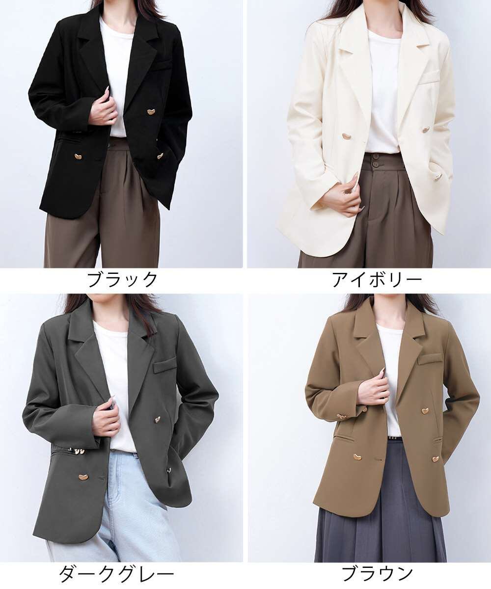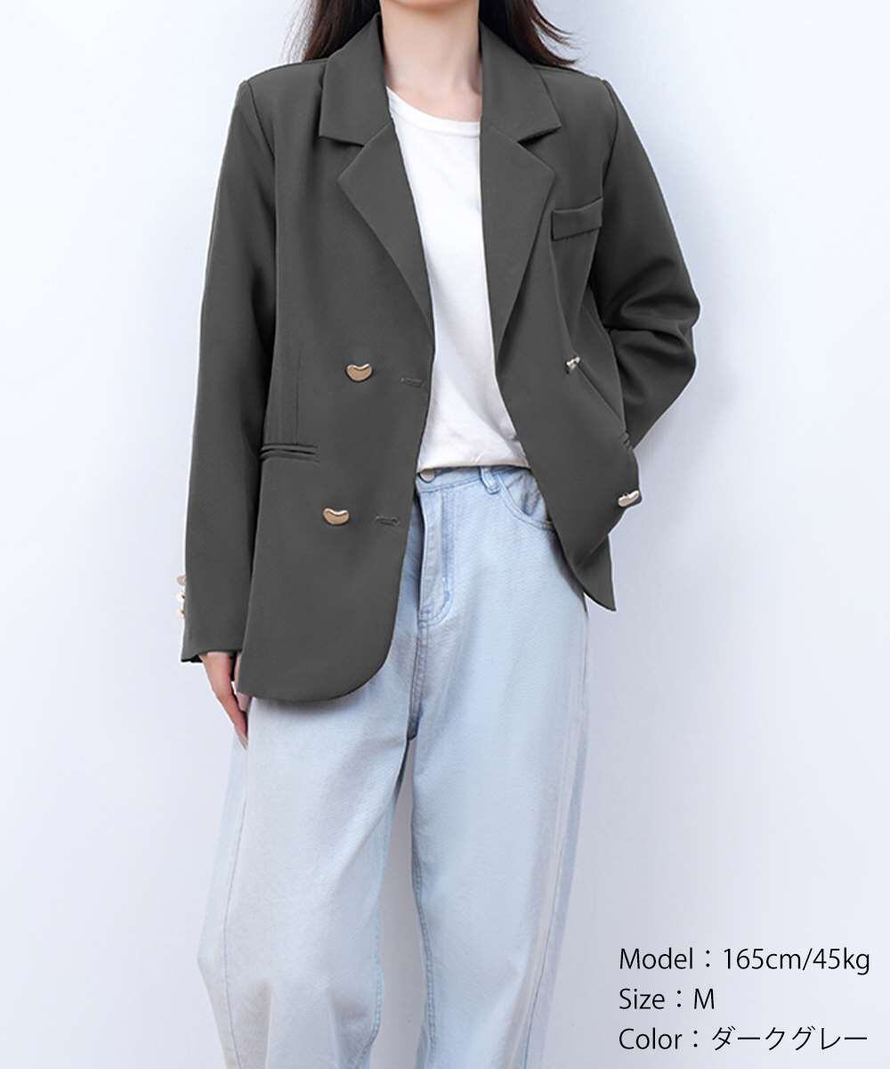 スーツジャケット ゴールドボタン オフィスカジュアル 韓国風ダブルブレザージャケット長袖 着やせ上着 ベーシックアウター