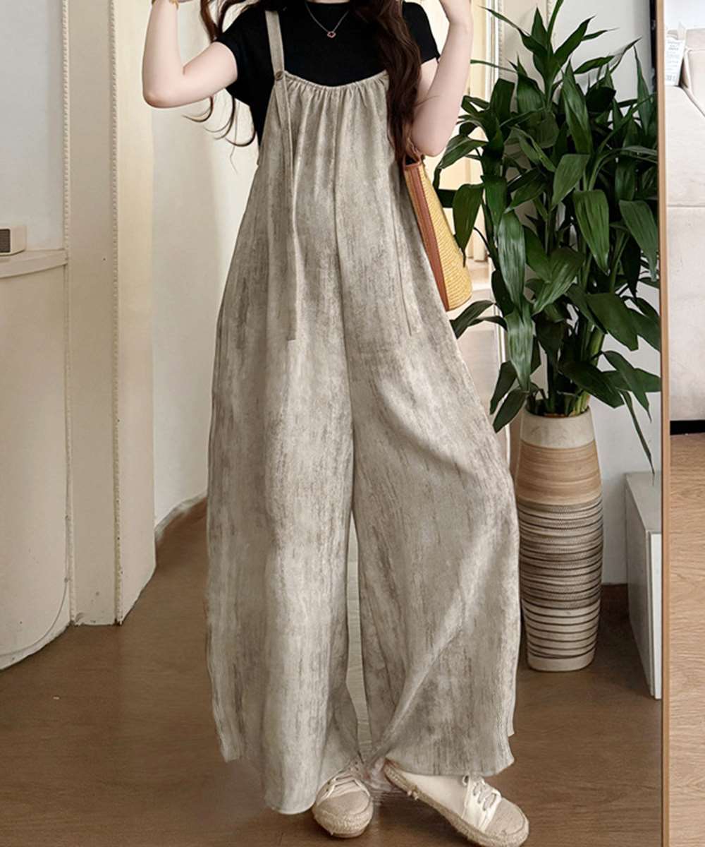キーワード:重ね着 カジュアル ボトムス ゆったり つなぎワイドパンツ