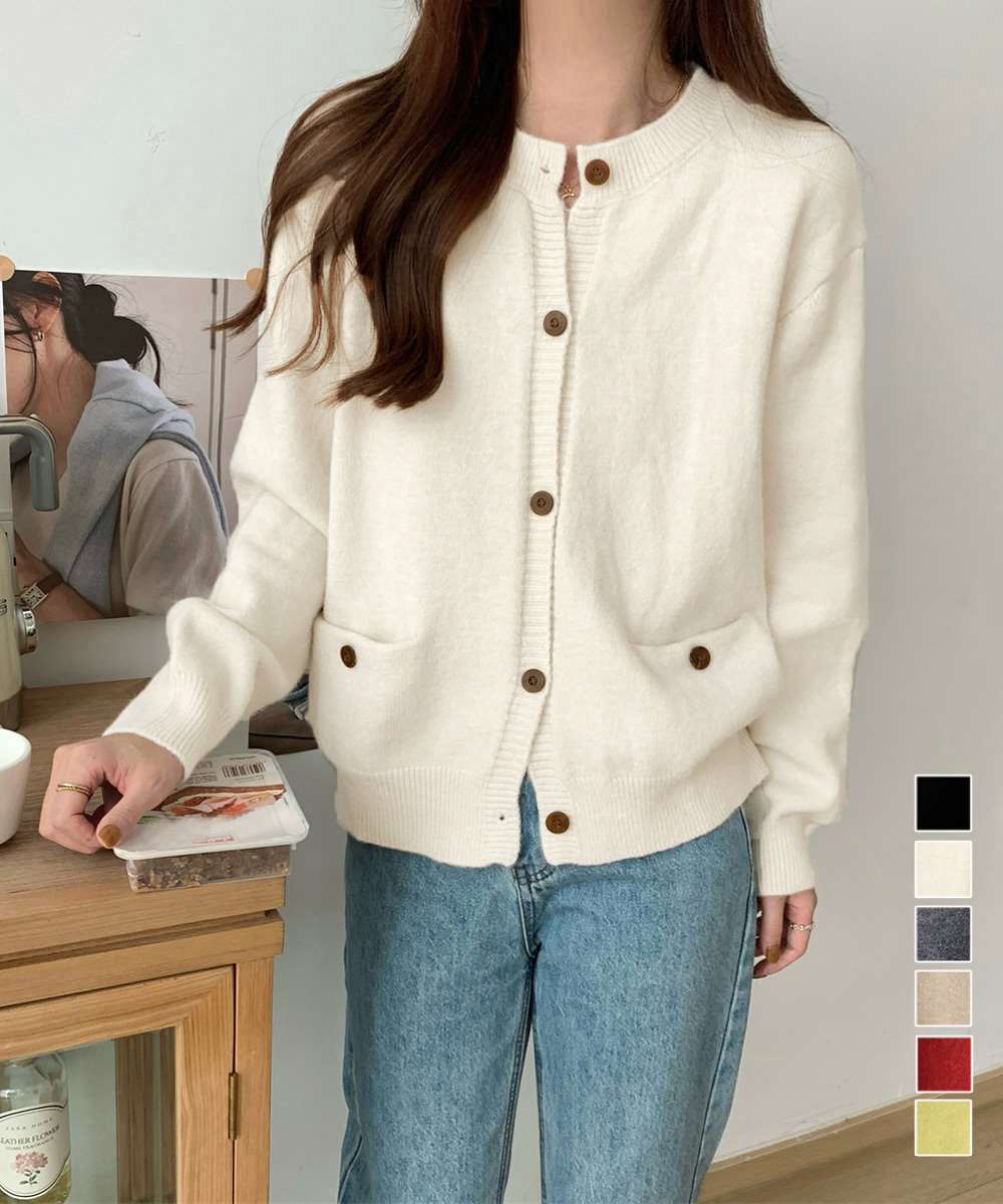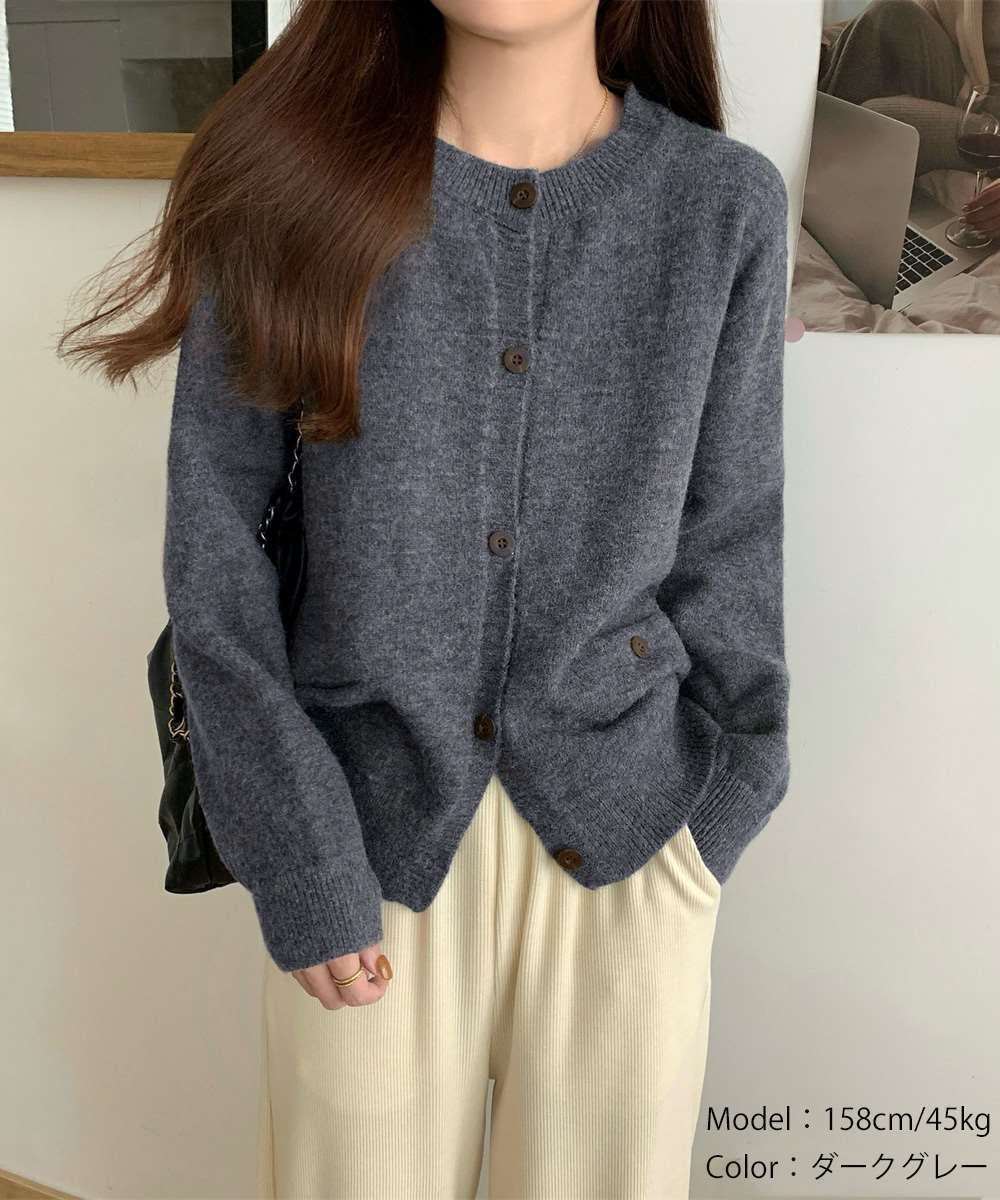 キーワード:前開きニット 無地 長袖カーディガン女 丸首ニット 韓国風