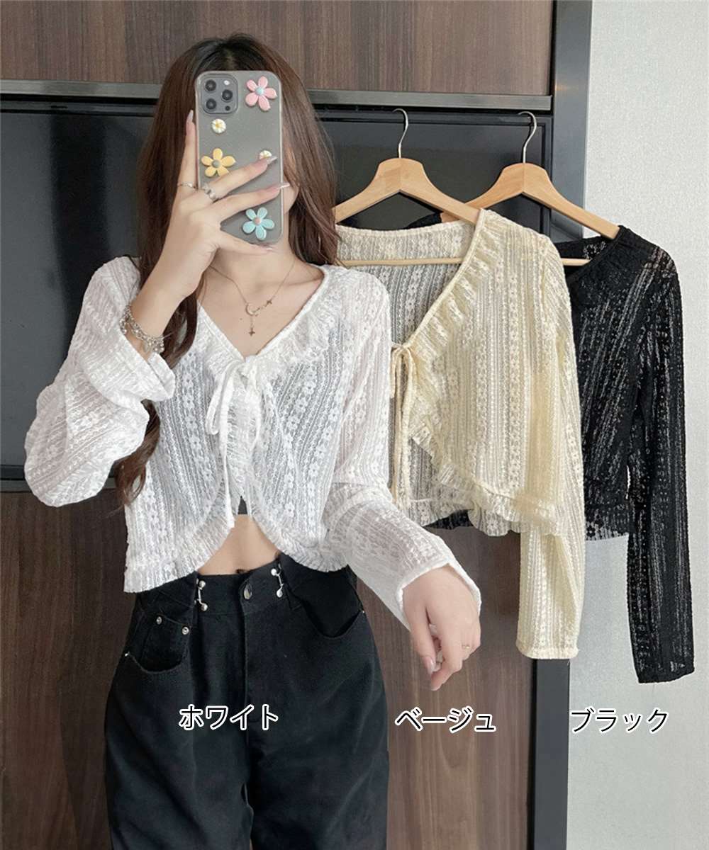 レース ボレロ カーディガン シアー トップス