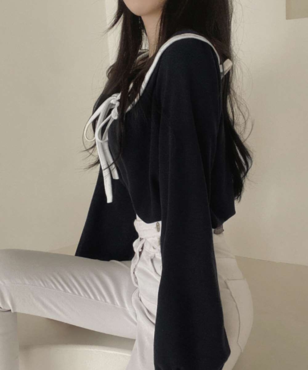 顔まわりを華やかに見せる大きめの襟と、きゅっと結んだリボンがフェミニンな印象に。