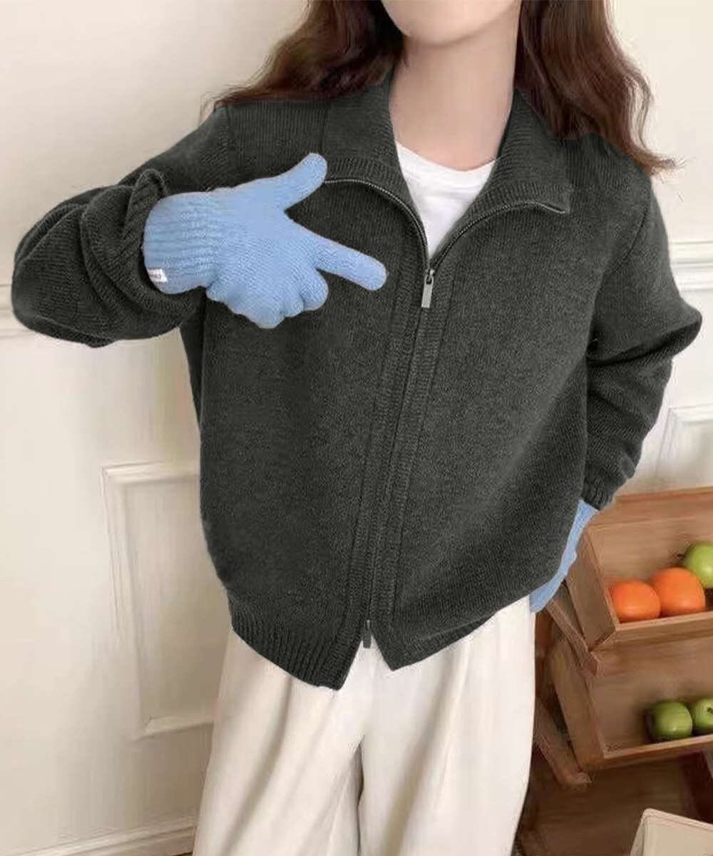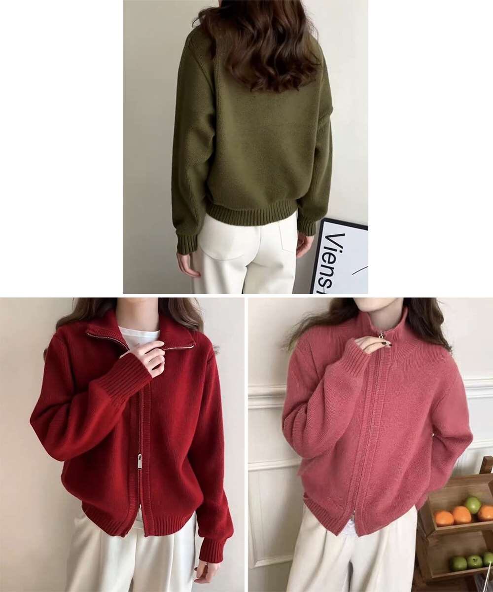秋冬ニットトップス ジップアップ 長袖カーディガン ハイゲージ ハイネックニット前開き 2wayニットセーターカジュアル