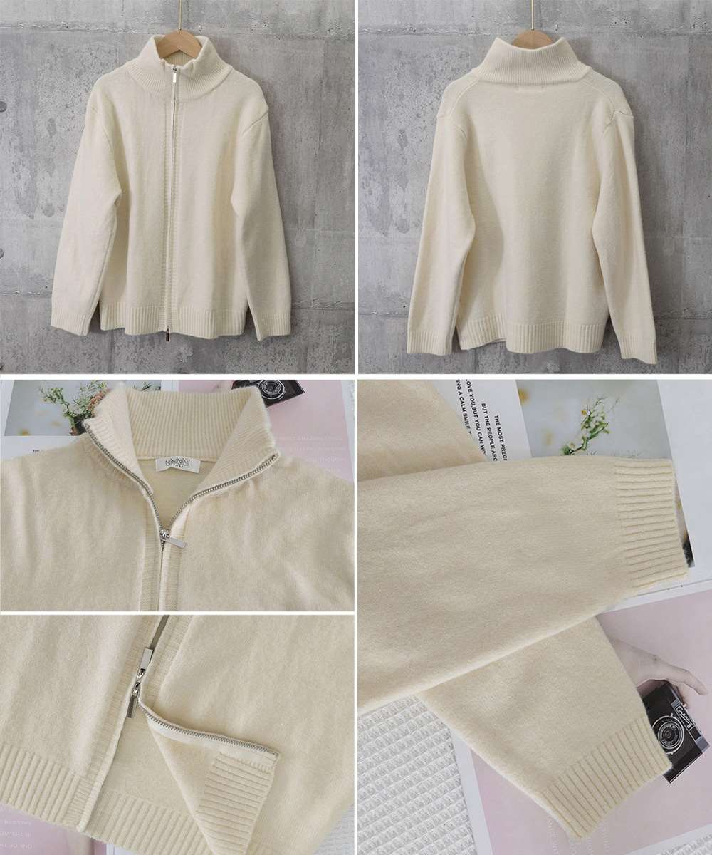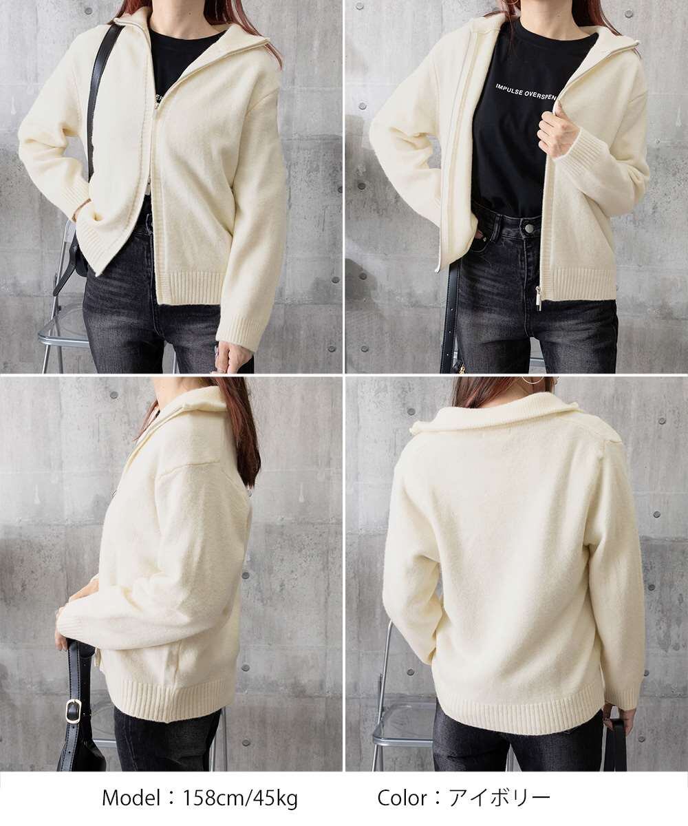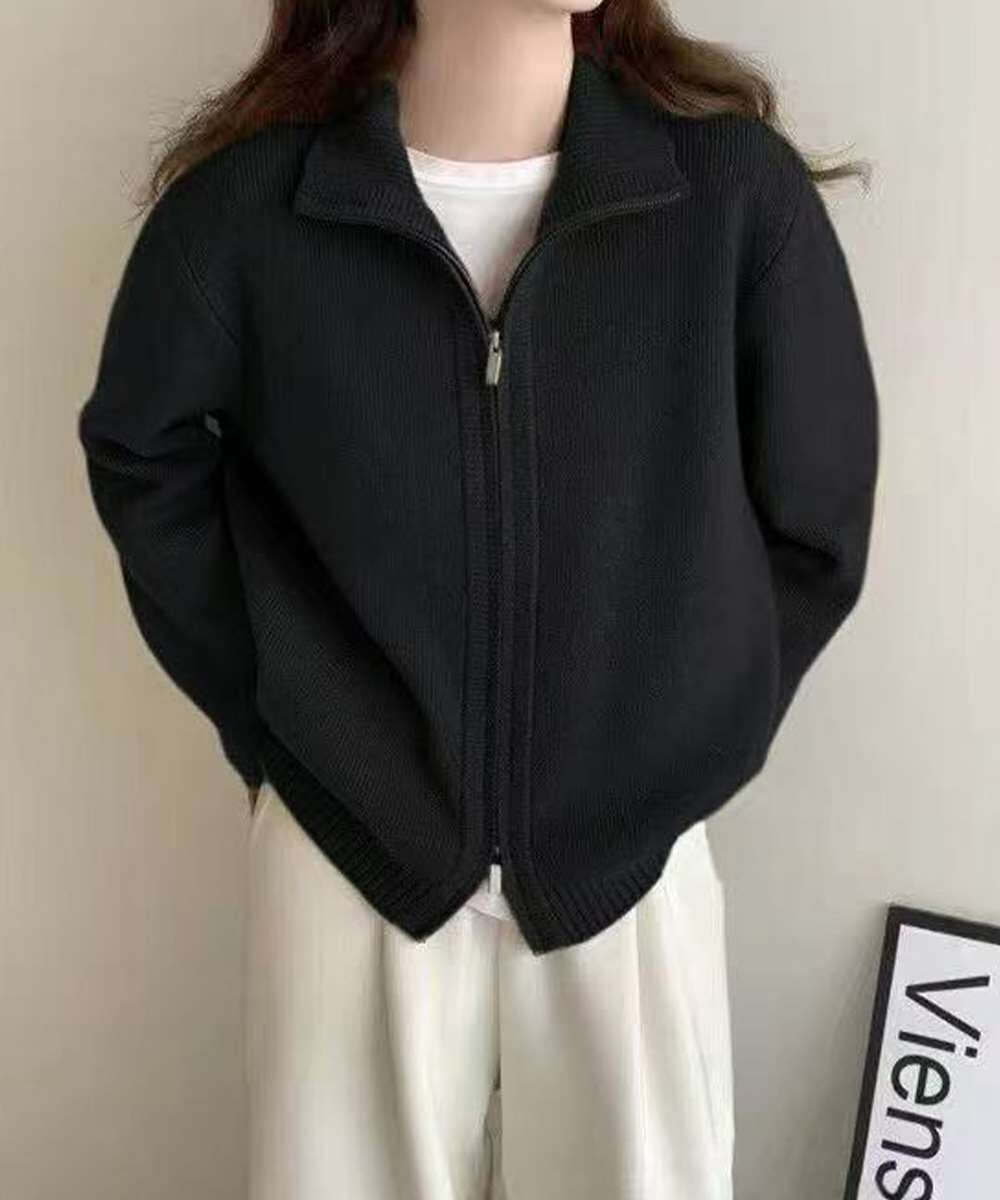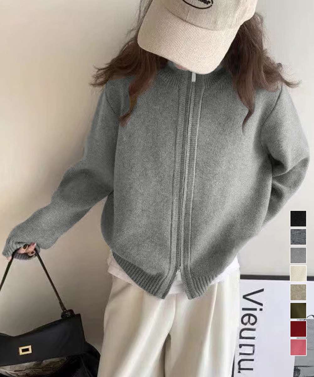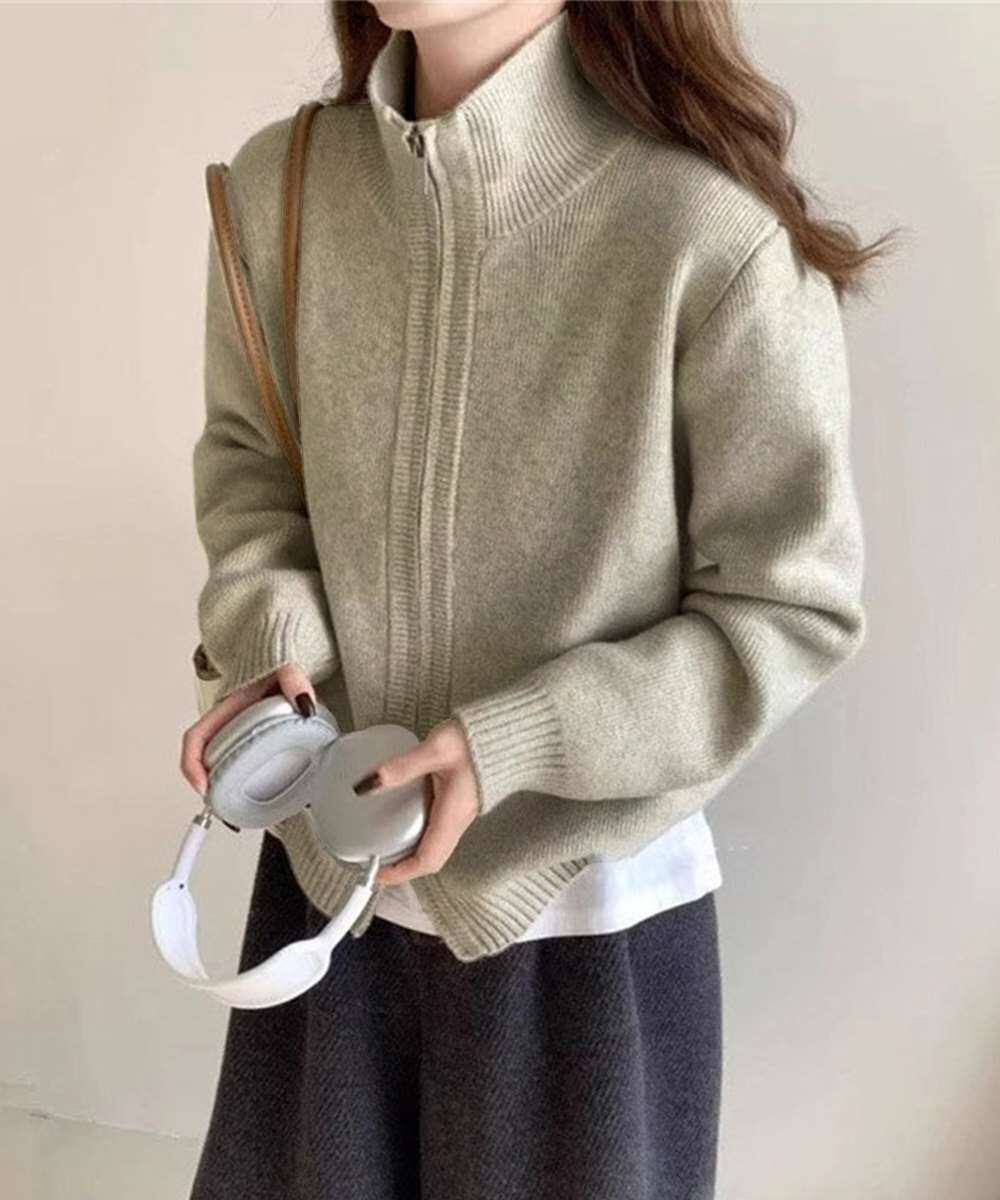 シンプルで着回し力抜群のニットジップアップカーディガン。
